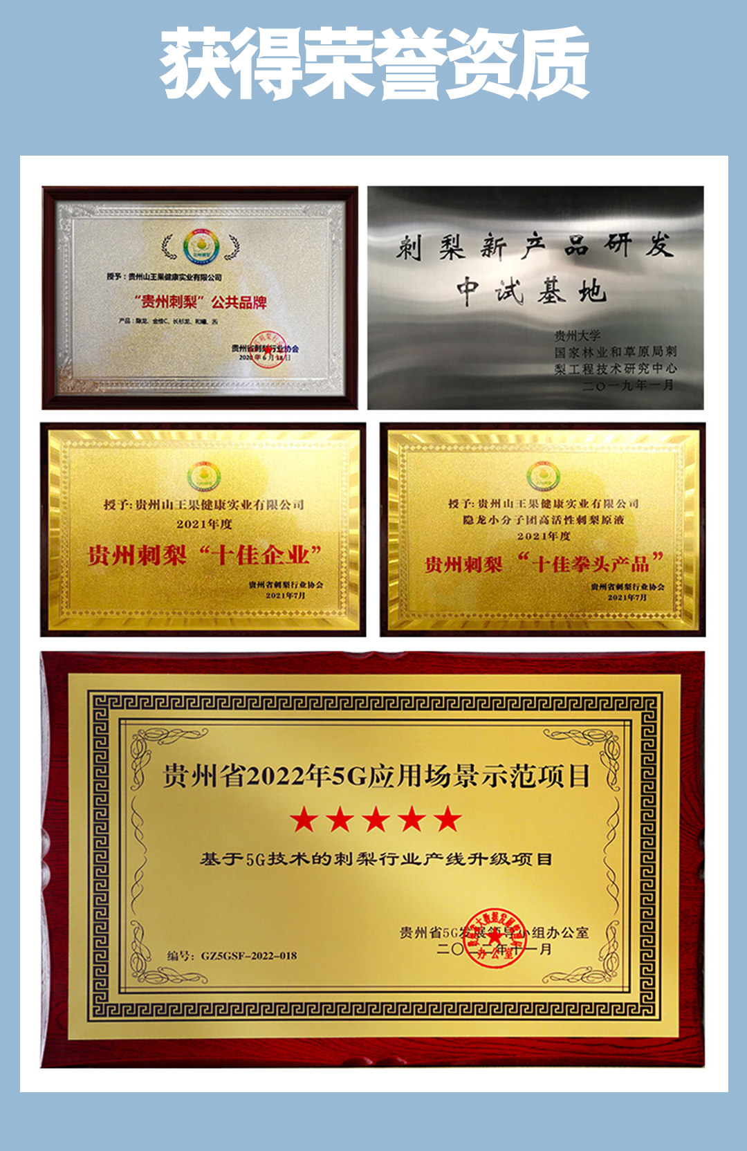 3.关于口感:有酸涩味,是刺梨中天然VC VP的味道,但具有独特的果香味,山王果的刺梨汁不添加糖、不加水,不加香精色素防腐剂,100%纯粹刺梨原汁,所以饮用的口感偏酸涩。