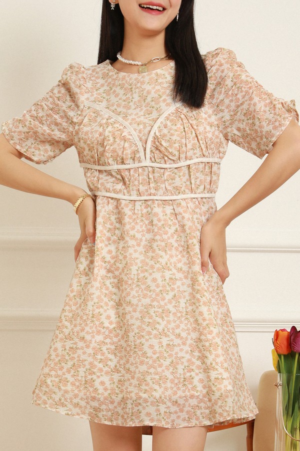 amadella 浪漫碎花拼接式收褶连衣裙 12376