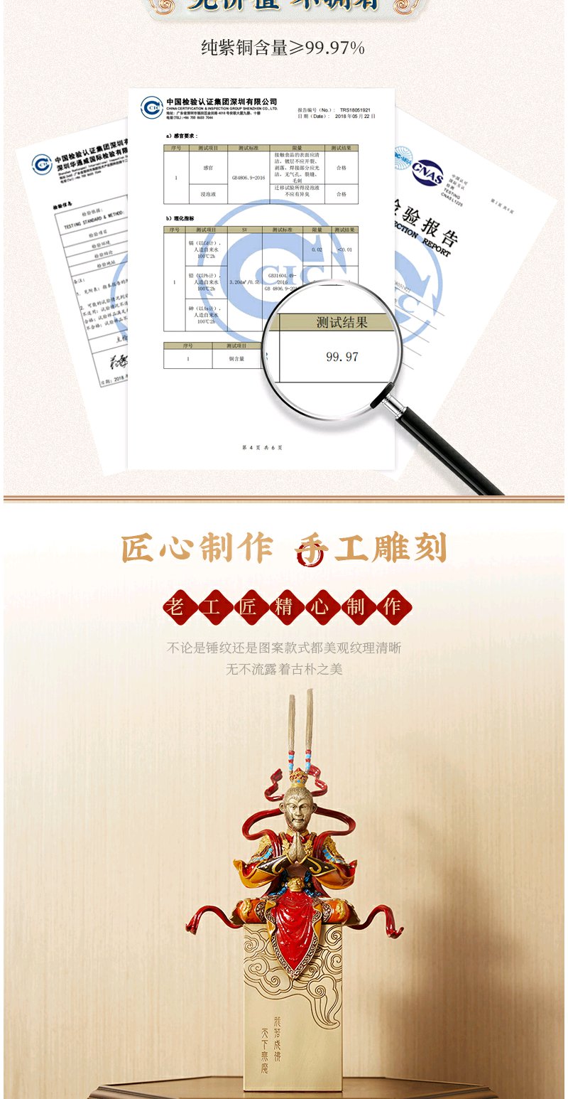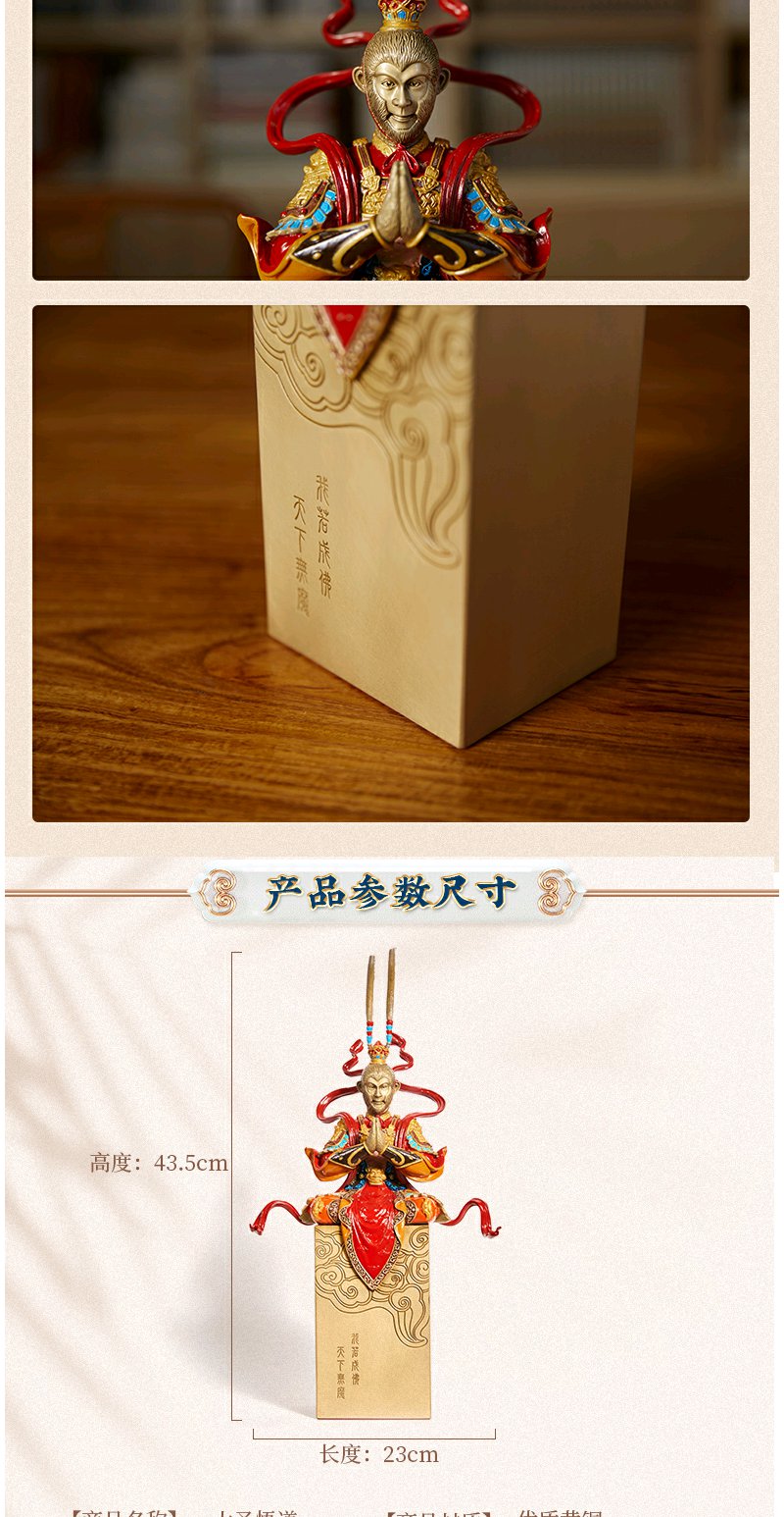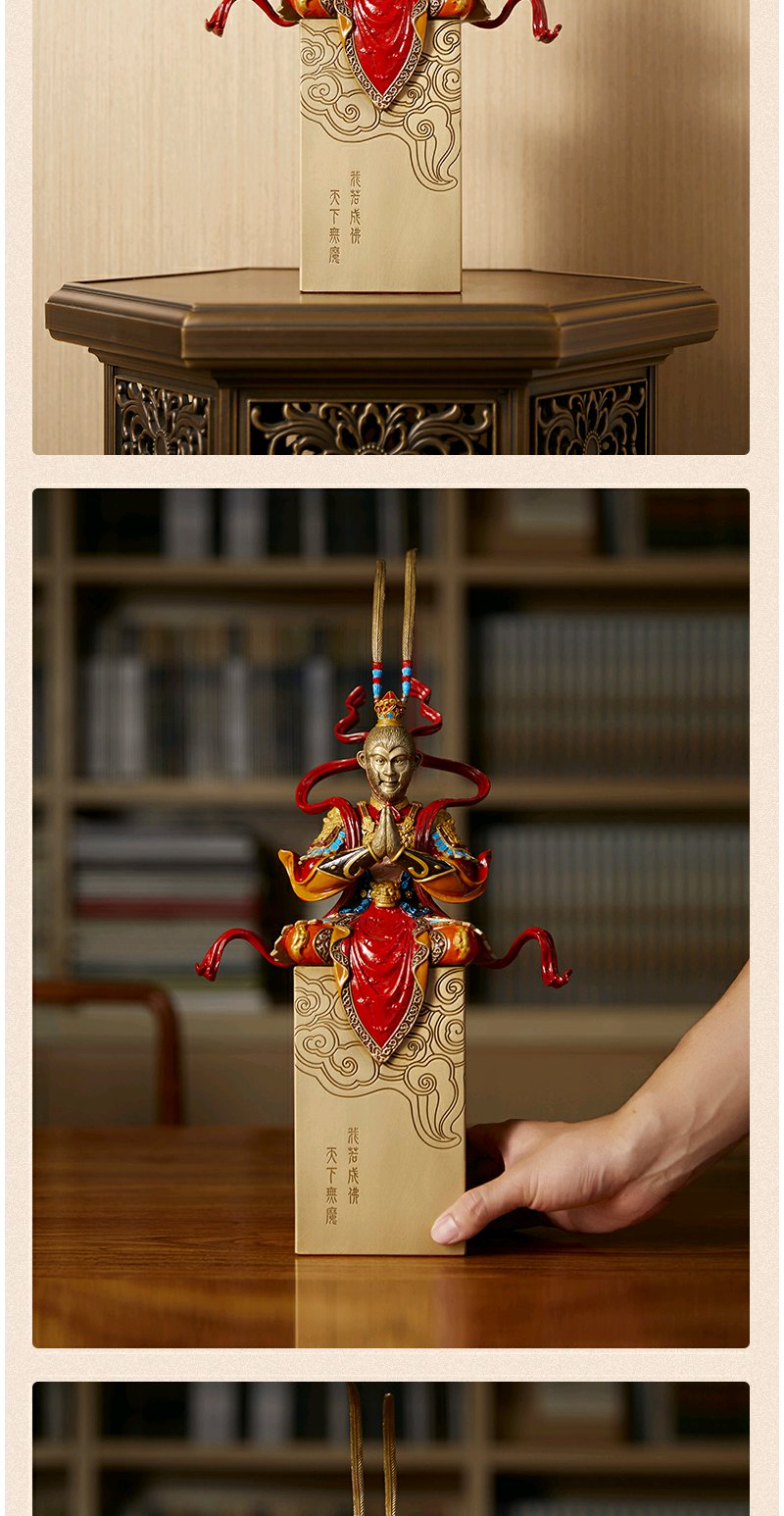 朱府铜艺 彩铜齐天大圣孙悟空悟道纯铜客厅办公室书房招财摆件