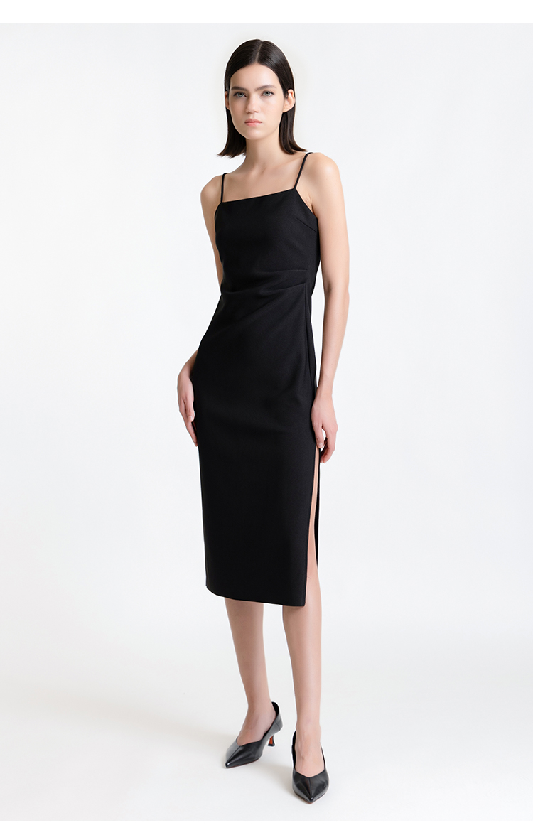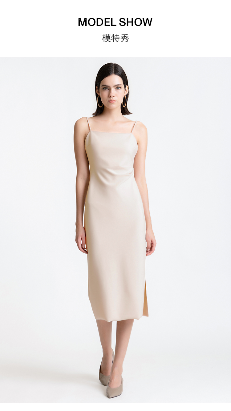LIZZY 优雅气质名媛风修身显瘦开叉吊带裙打底单穿连衣裙7800