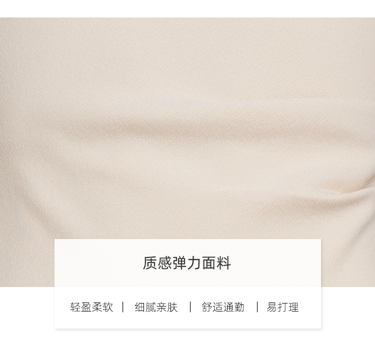 | 廓形: H型 | 材质成分: 聚酯纤维50% 粘胶纤维(粘纤)40% 聚氨酯弹性纤维(氨纶)10% |