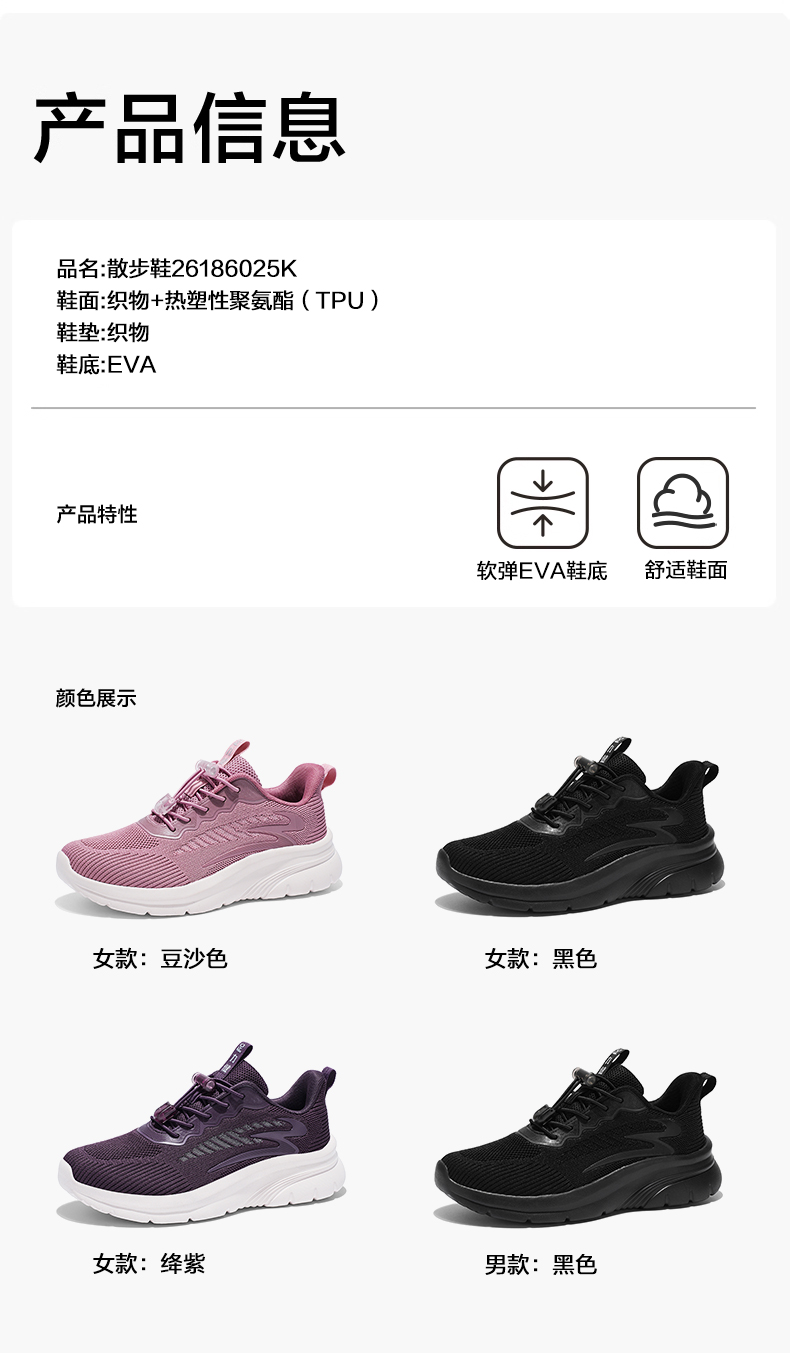 【足力健健康鞋】男女同款 轻便散步鞋 不易累脚 轻盈软弹
