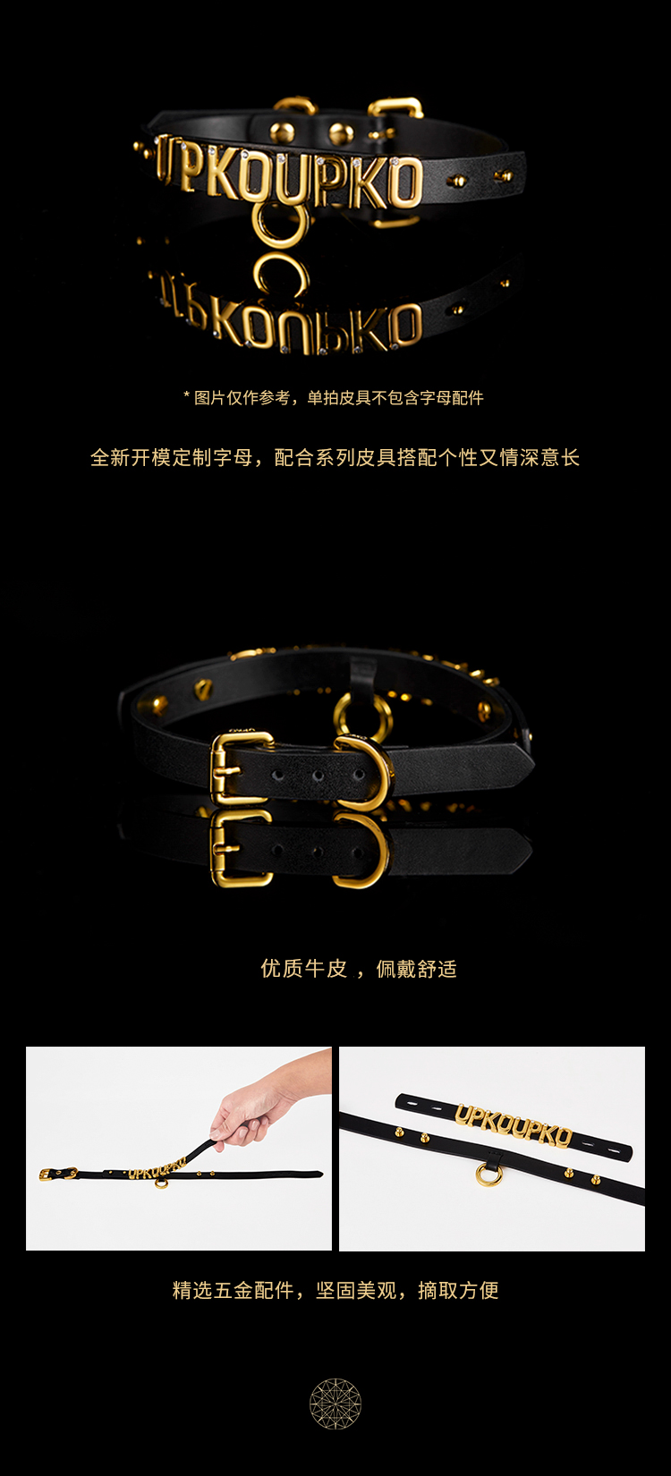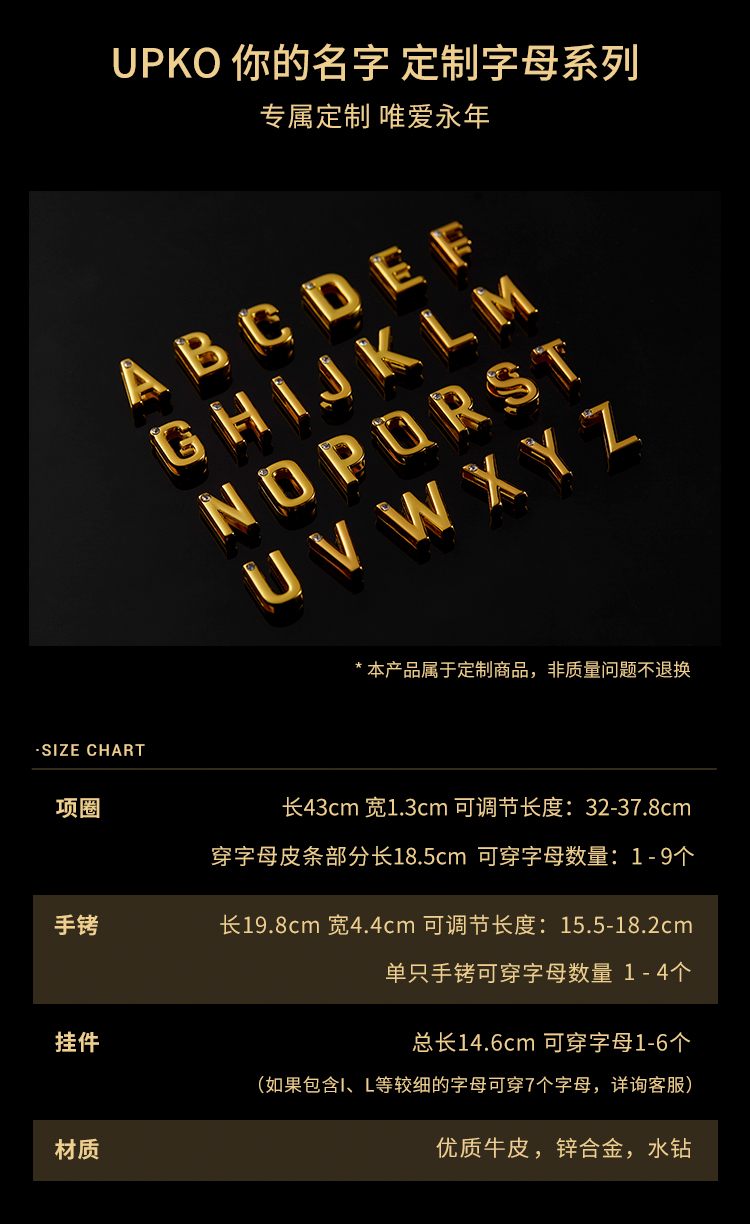 UPKO 你的名字定制字母真皮手铐项圈挂件配饰