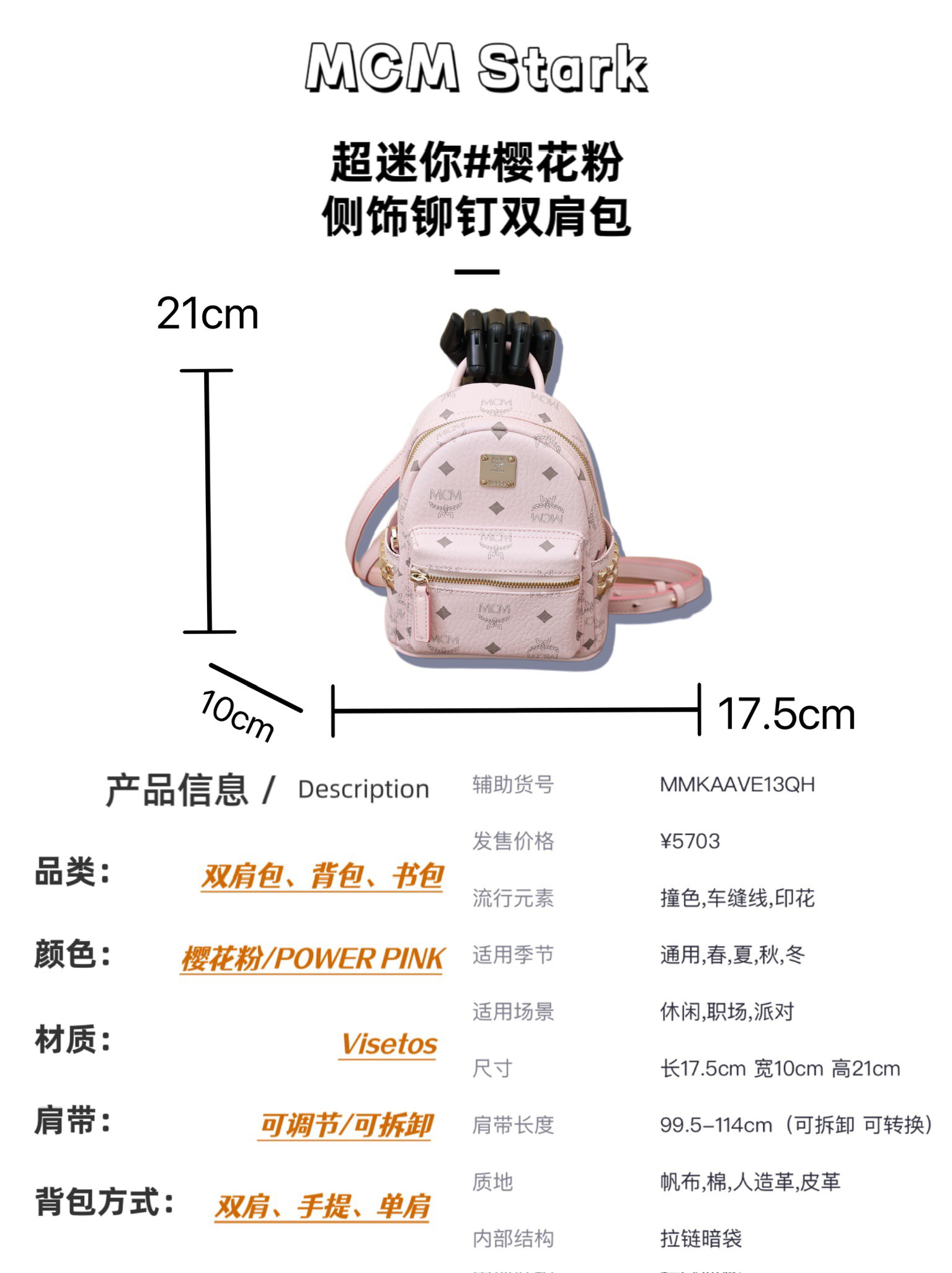 用这款超迷你Stark双肩背包秀出新风格。由经典Visetos制成,饰以豪华的Nappa皮革饰边及前卫感十足的全新铆钉细节。适合各种搭配 创新设计可以利用肩带秒变斜挎包、双肩包、单肩包、腰包和手提包。