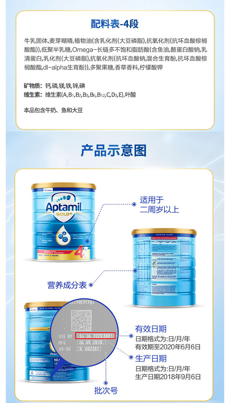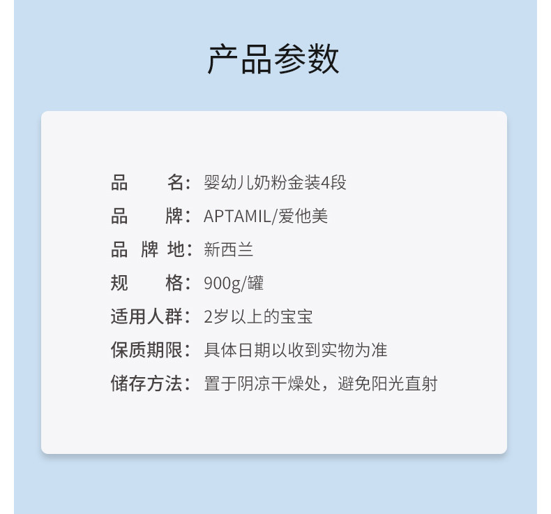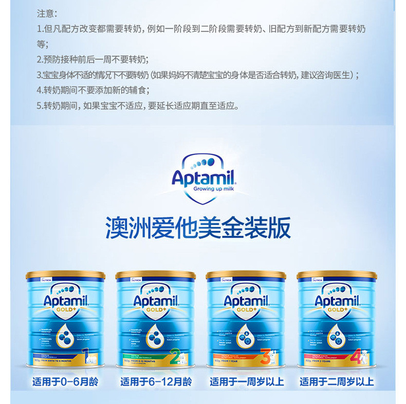 爱他美 金装加强奶粉4段 900克 两罐装 澳洲