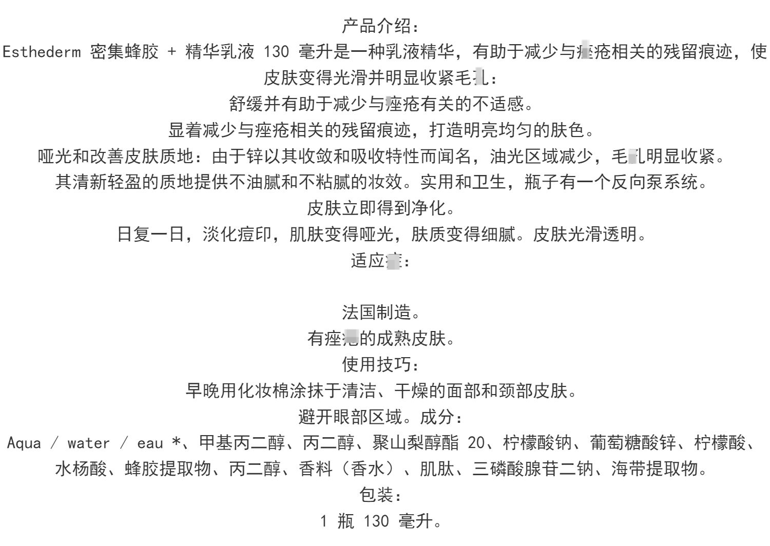 【品名】雅诗敦蜂胶净肤清颜精华水130ml
