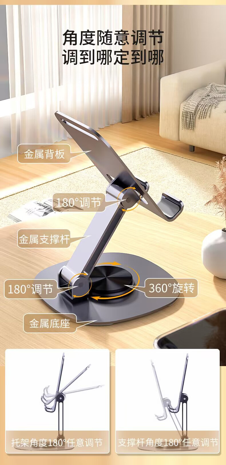 「全金属支架」手机支架桌面平板直播落地懒人铝合金金属旋转折叠升降直播支架数码配件