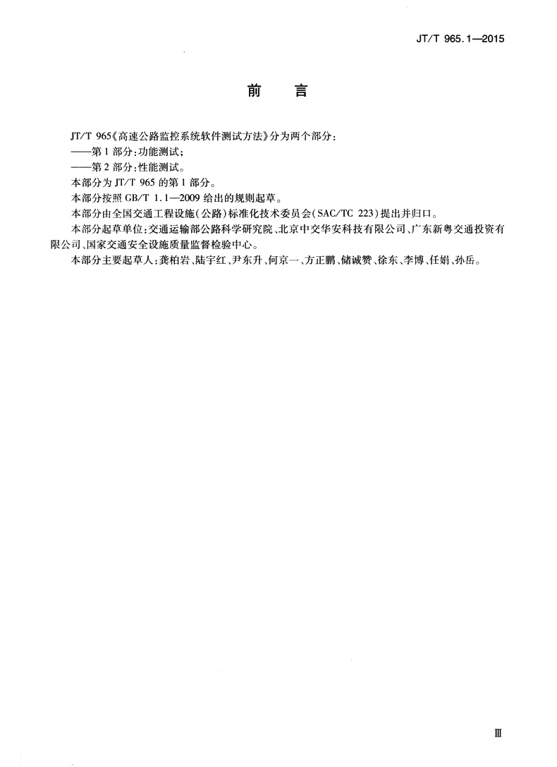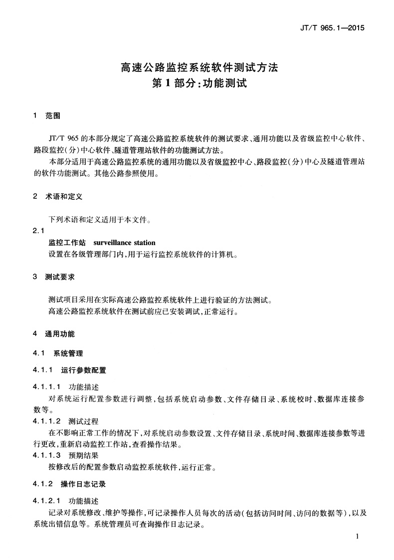 书名:高速公路监控系统软件测试方法 第1部分:功能测试(JT/T 965.1—2015)