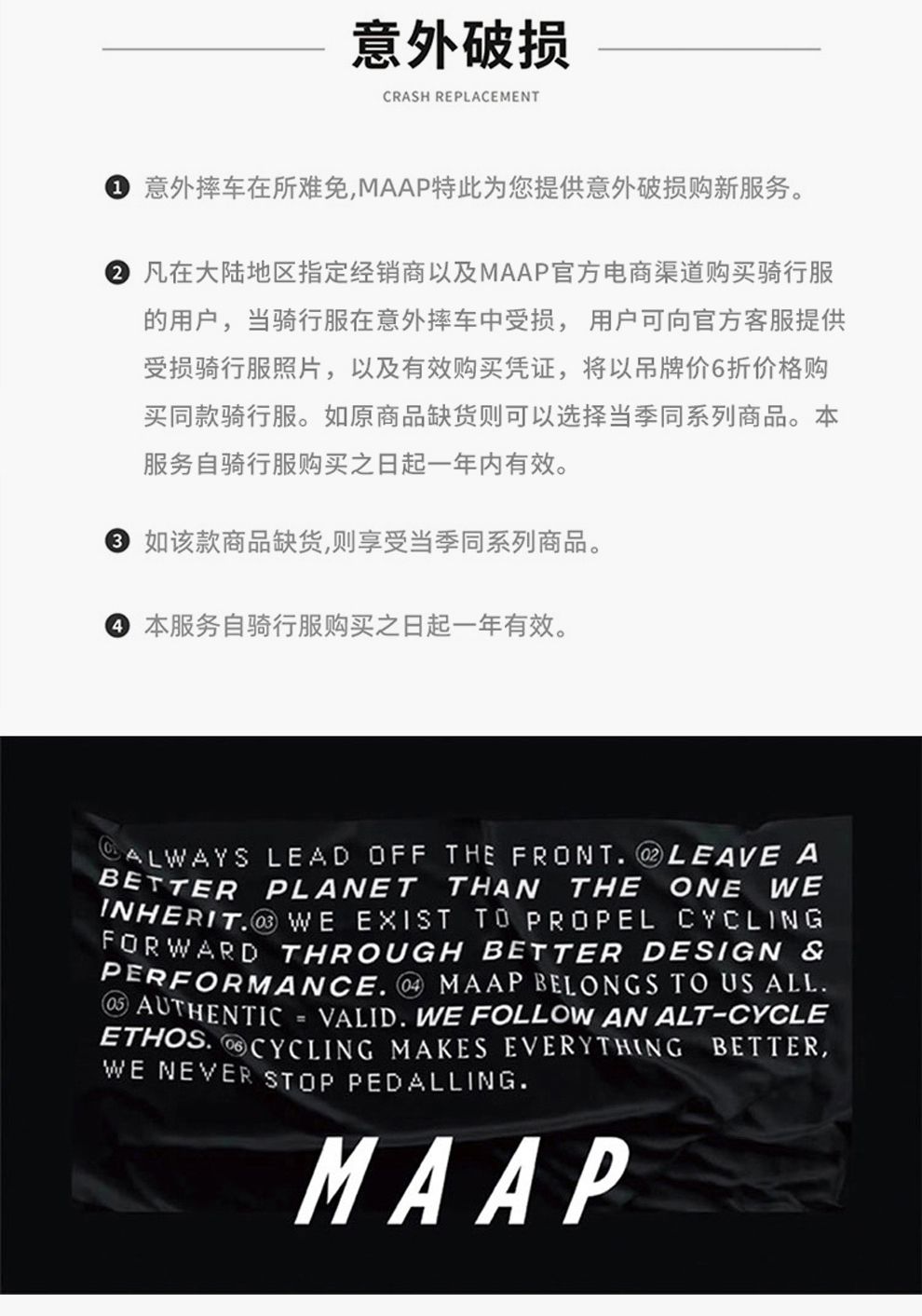 - MAAP作为澳洲功能性骑行服,其出色的时尚设计元素为骑行生活增添色彩。MAAP在为专业车手提升性能表现方面也毫不妥协。
