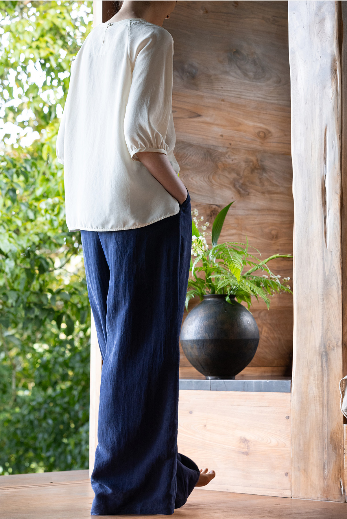 牧衣游原创 重磅香云纱休闲长裤宽松垂感百搭禅意真丝裤子 织本集