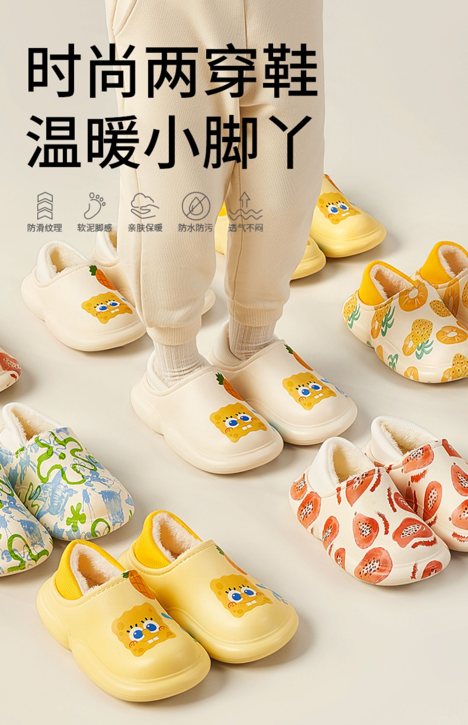 科巢儿童棉拖鞋秋冬季男童女童宝宝室内居家防水防滑小孩冬天保暖棉鞋