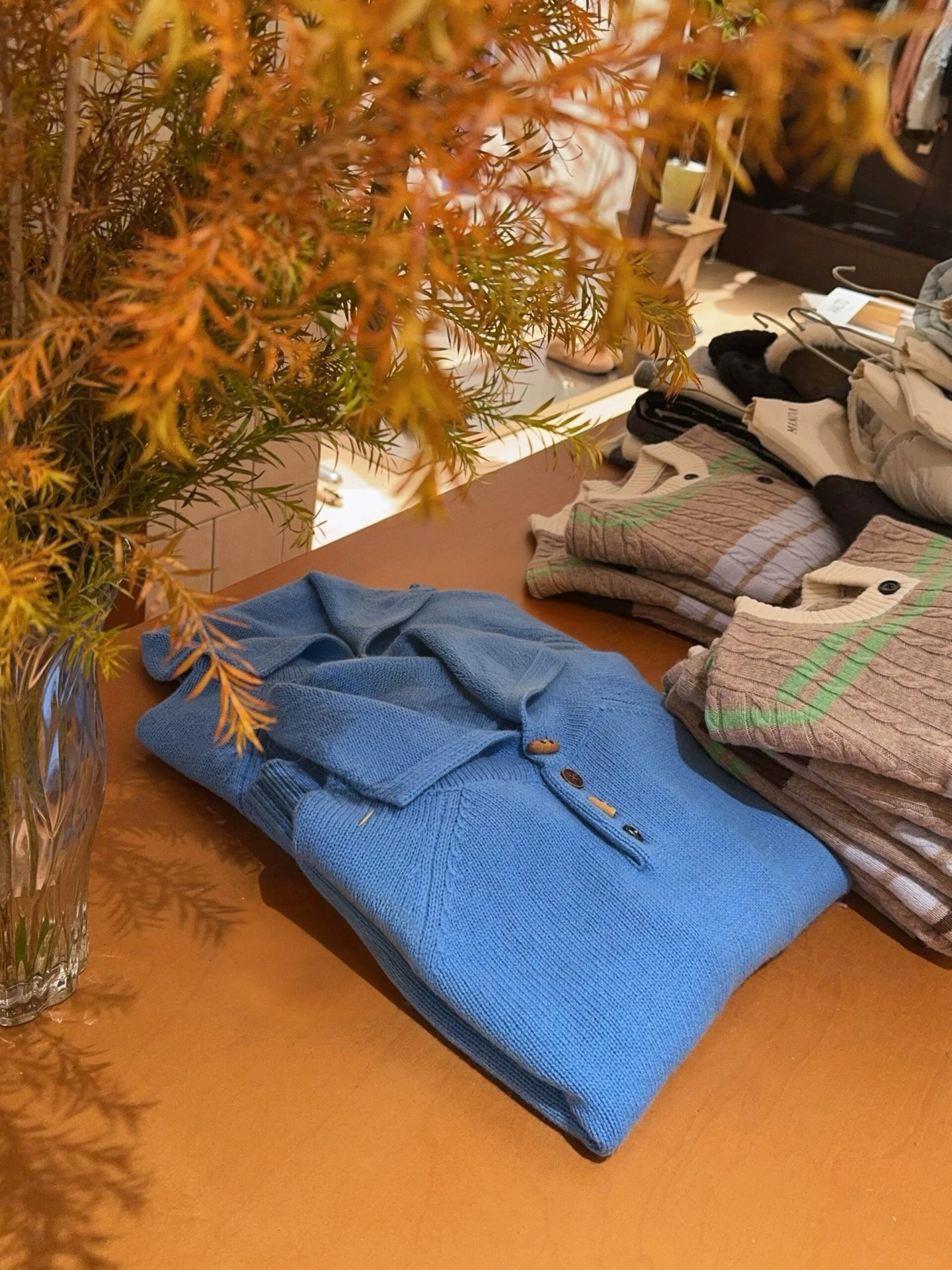 💰128元包邮, 【JS3699167 】显白蓝+设计感前后两穿~ cos风冬季牛角扣翻领小众羊毛毛衣 秋冬的衣橱里, 总需要一件能瞬间点亮穿搭的亮色单品,