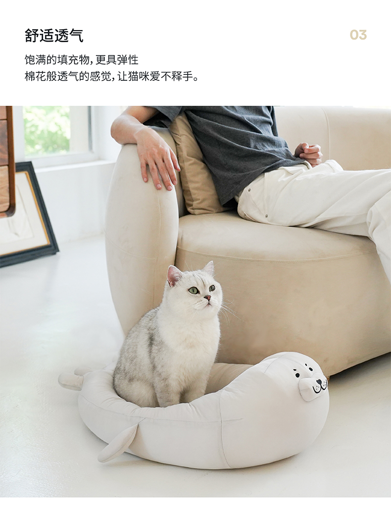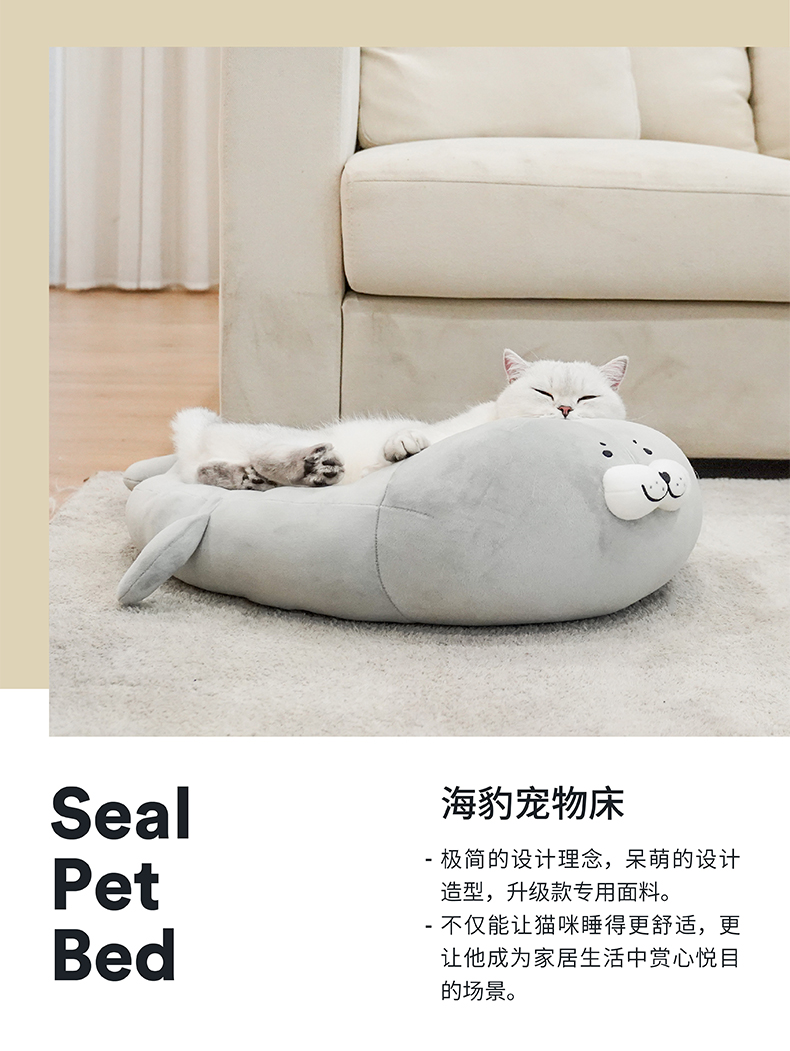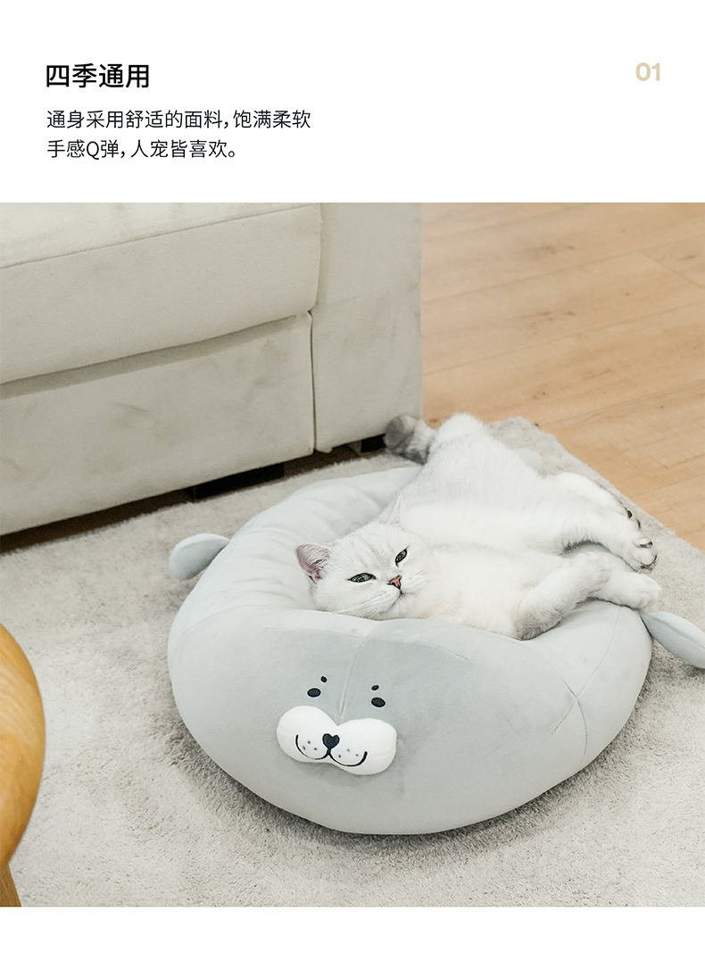 zeze海豹冰丝猫窝四季通用夏季可拆洗狗窝房子猫咪床宠物用品