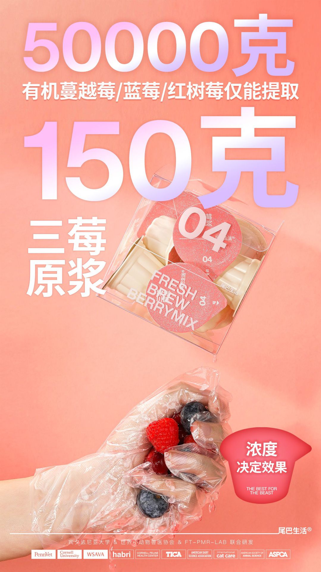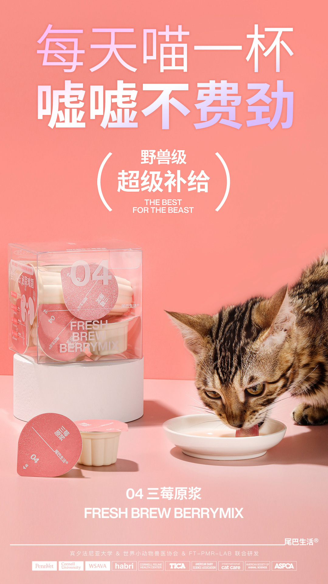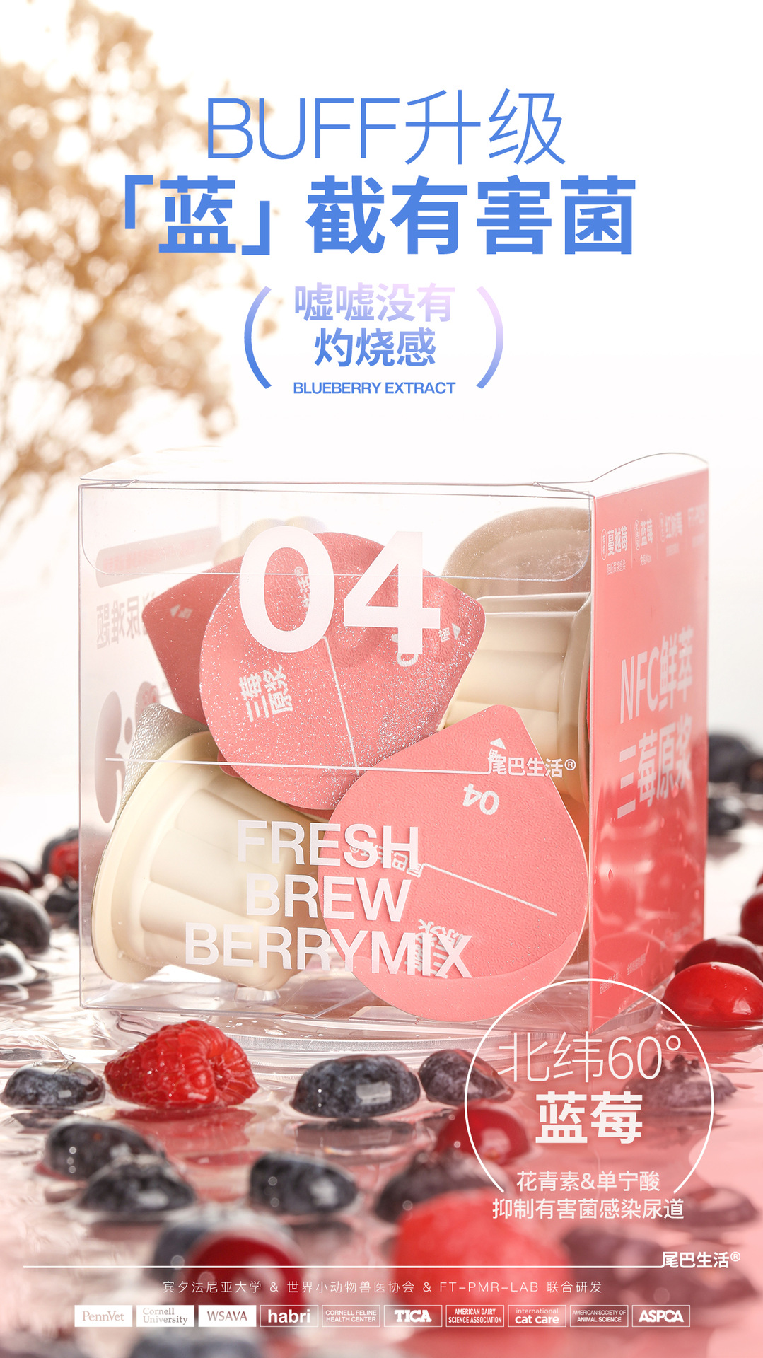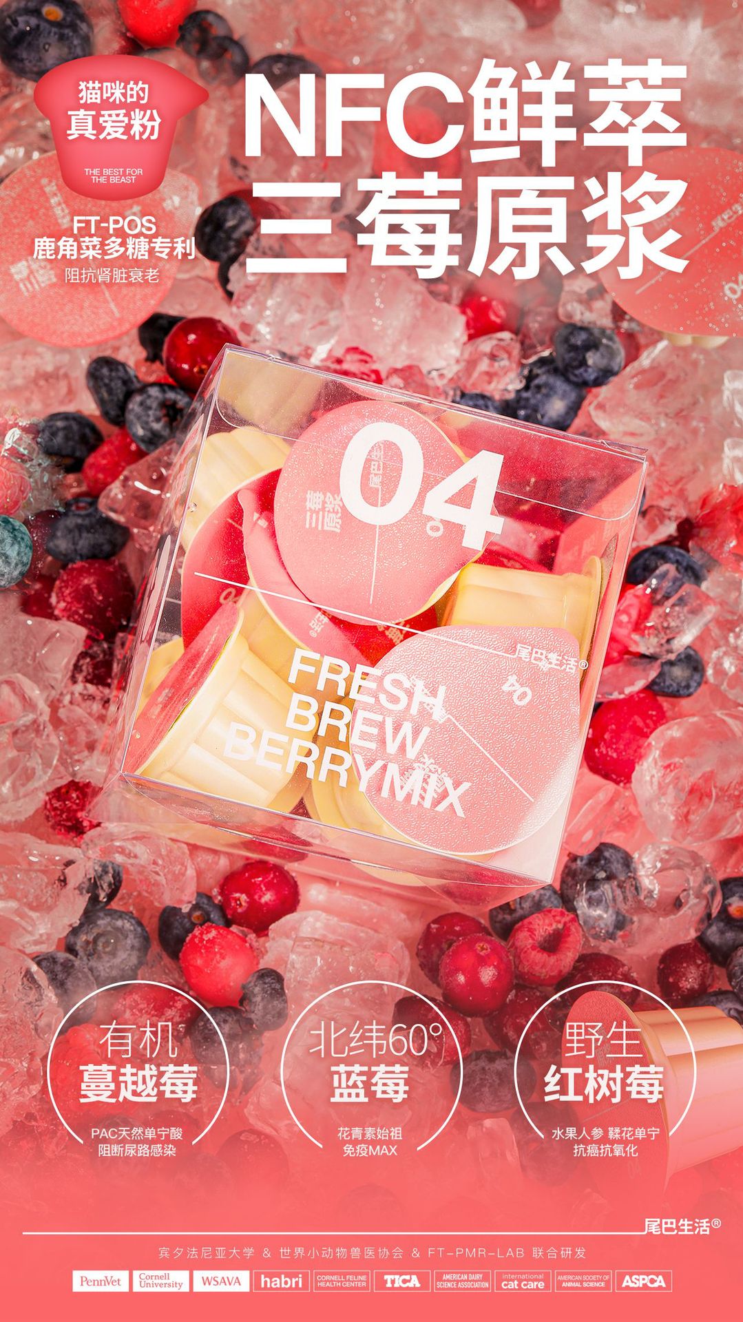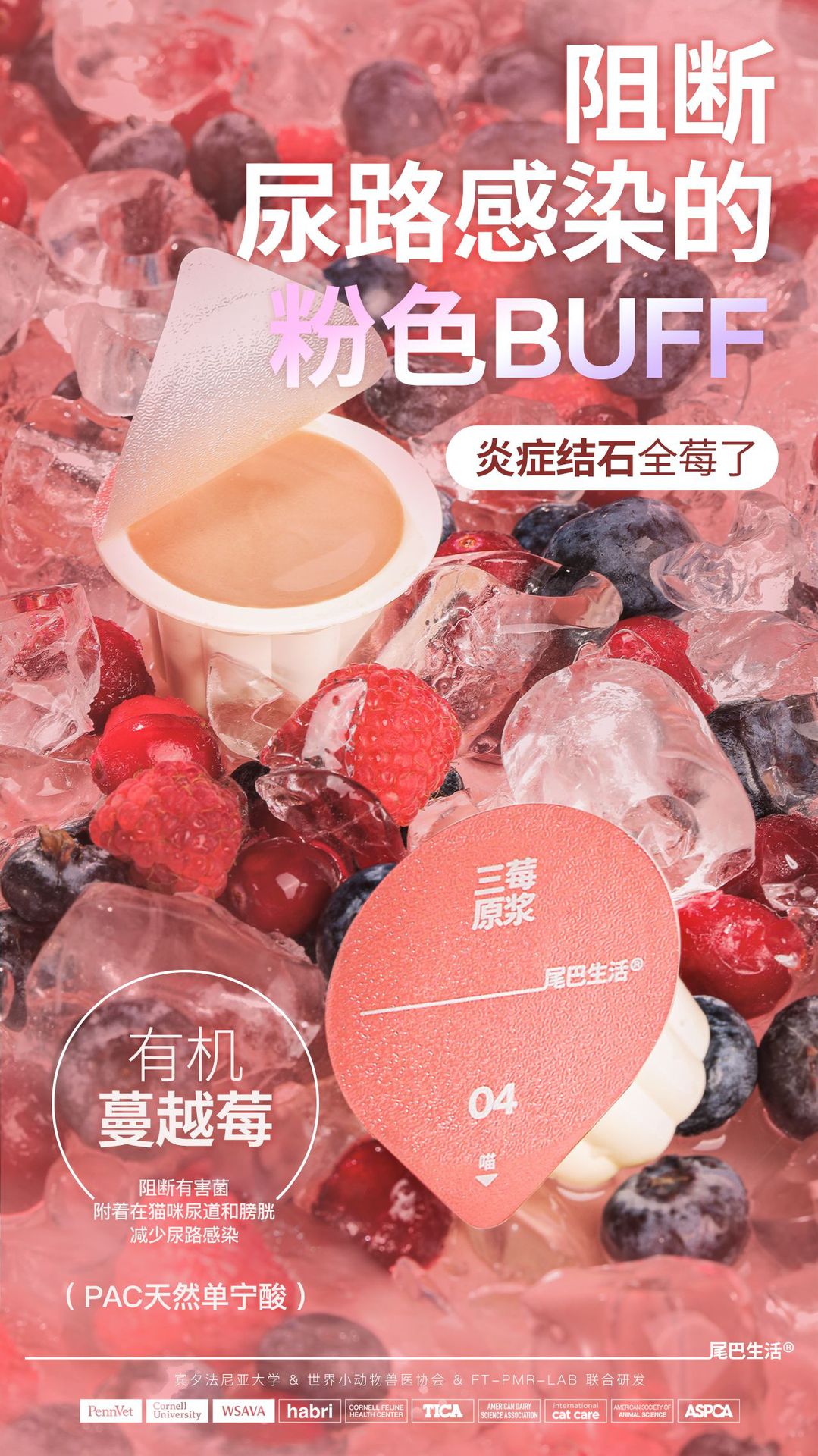 尾巴生活NFC鲜萃三莓原浆液体小粉杯猫咪补水保肾呵护泌尿系统