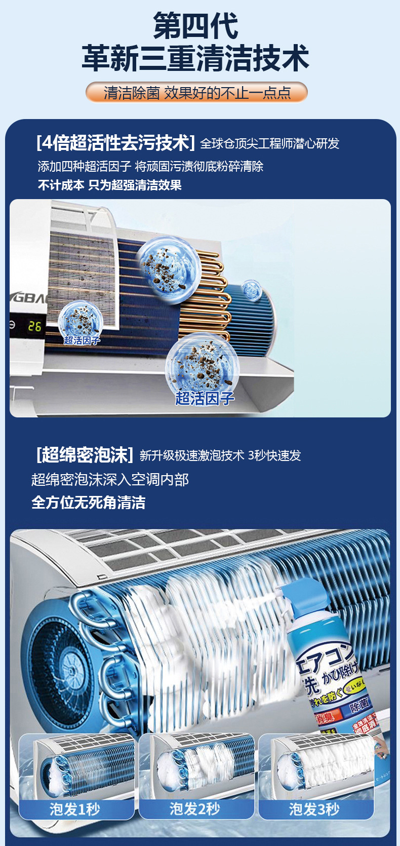 日本【第四代强效杀菌去异味】免洗空调清洗剂 挂机内机专用 泡沫涤尘【神器 】 强效杀菌去异味空调洗剂