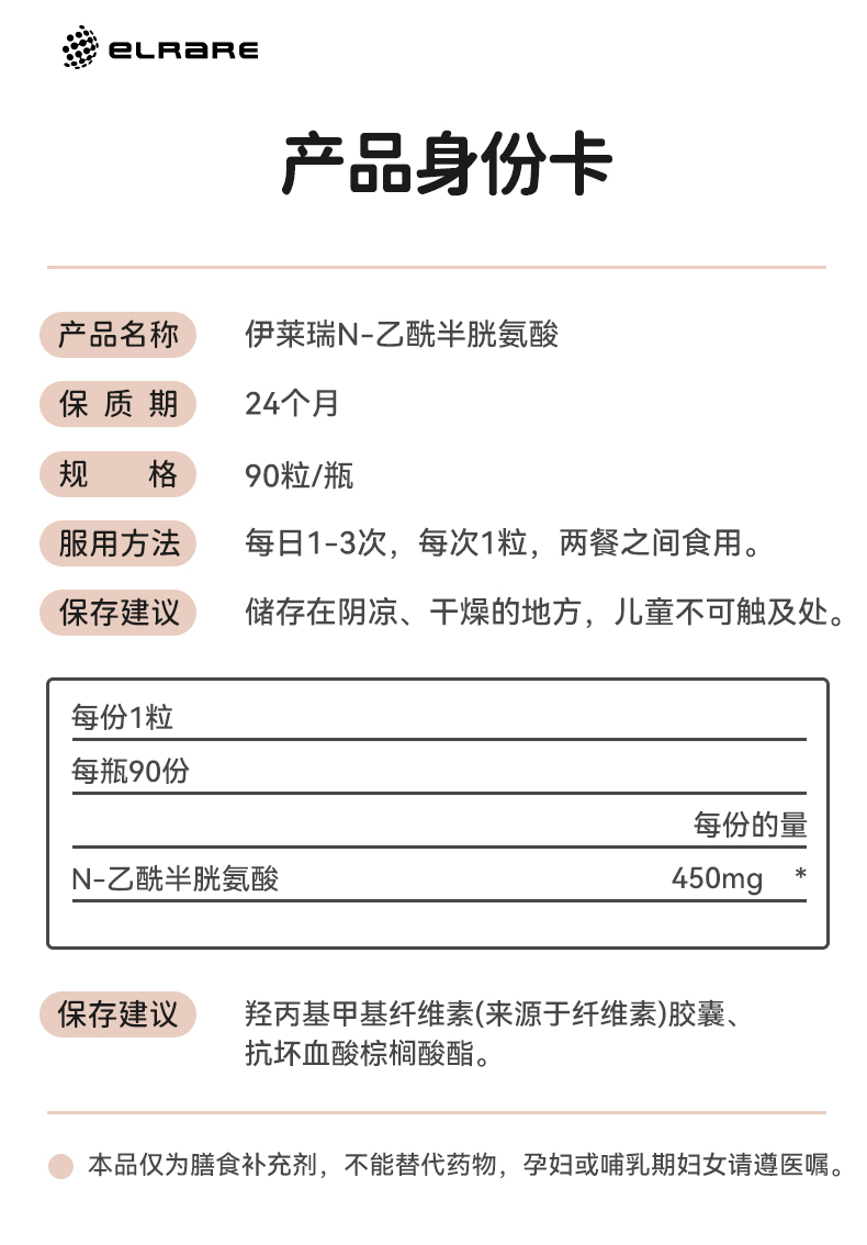 【香港直邮】ELRARE伊莱瑞 NAC胶囊 90粒/瓶 27.03