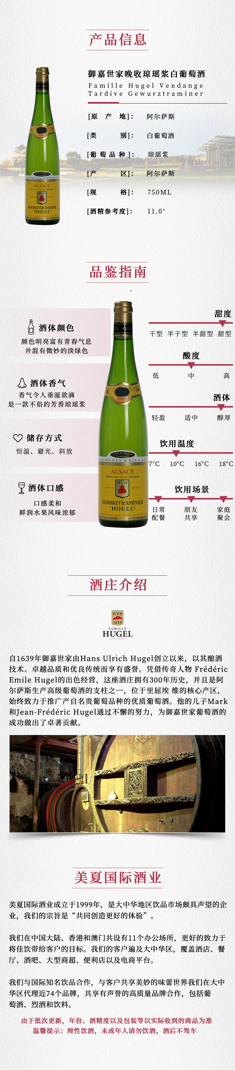 进口法国御嘉世家晚收琼瑶浆白葡萄酒750ml