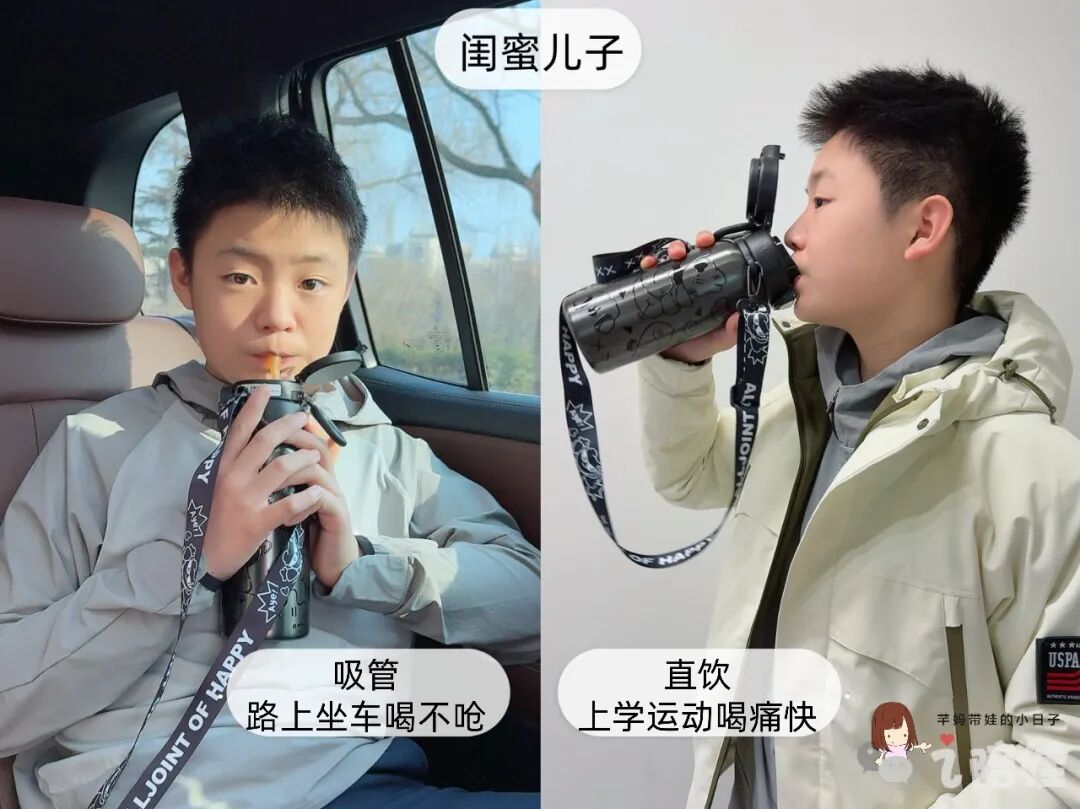但这种双饮的,把直饮和吸管二合一在一个盖子上了,上学运动完喝痛快,路上坐车喝不呛。