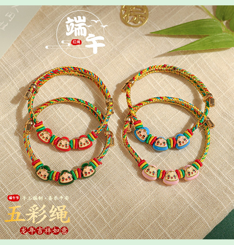手工编织五彩绳成品2024新款端午手绳儿童宝宝手链五色线手串配饰