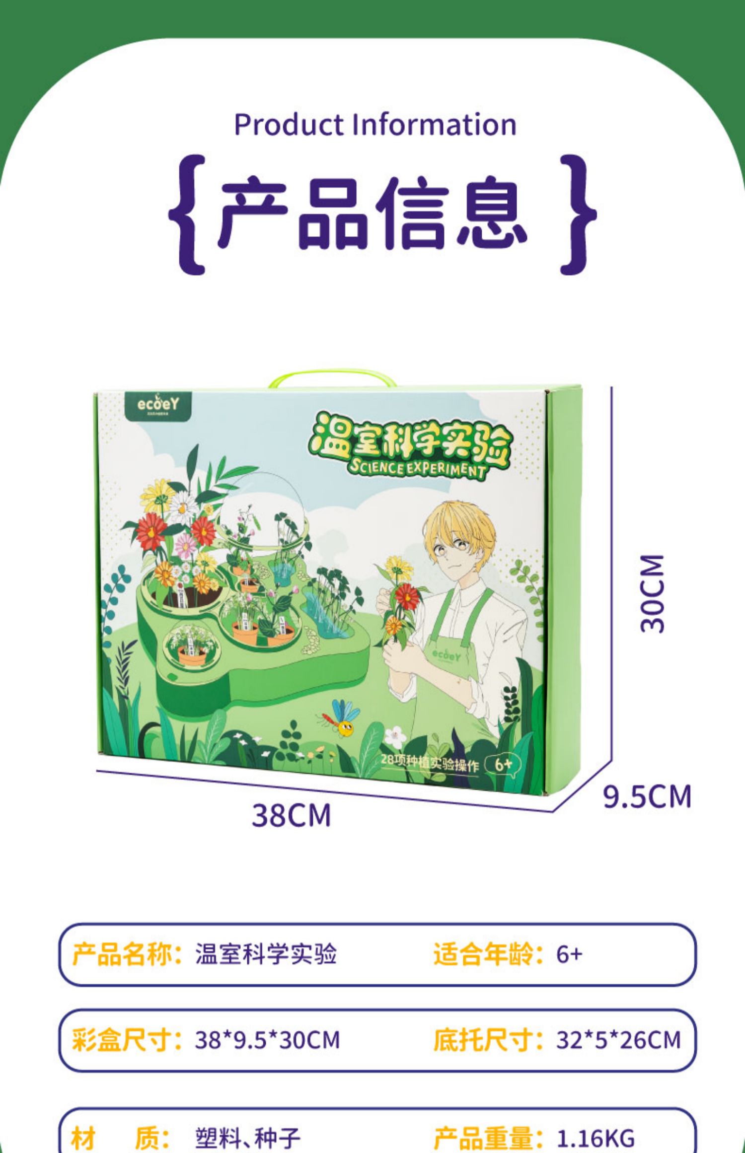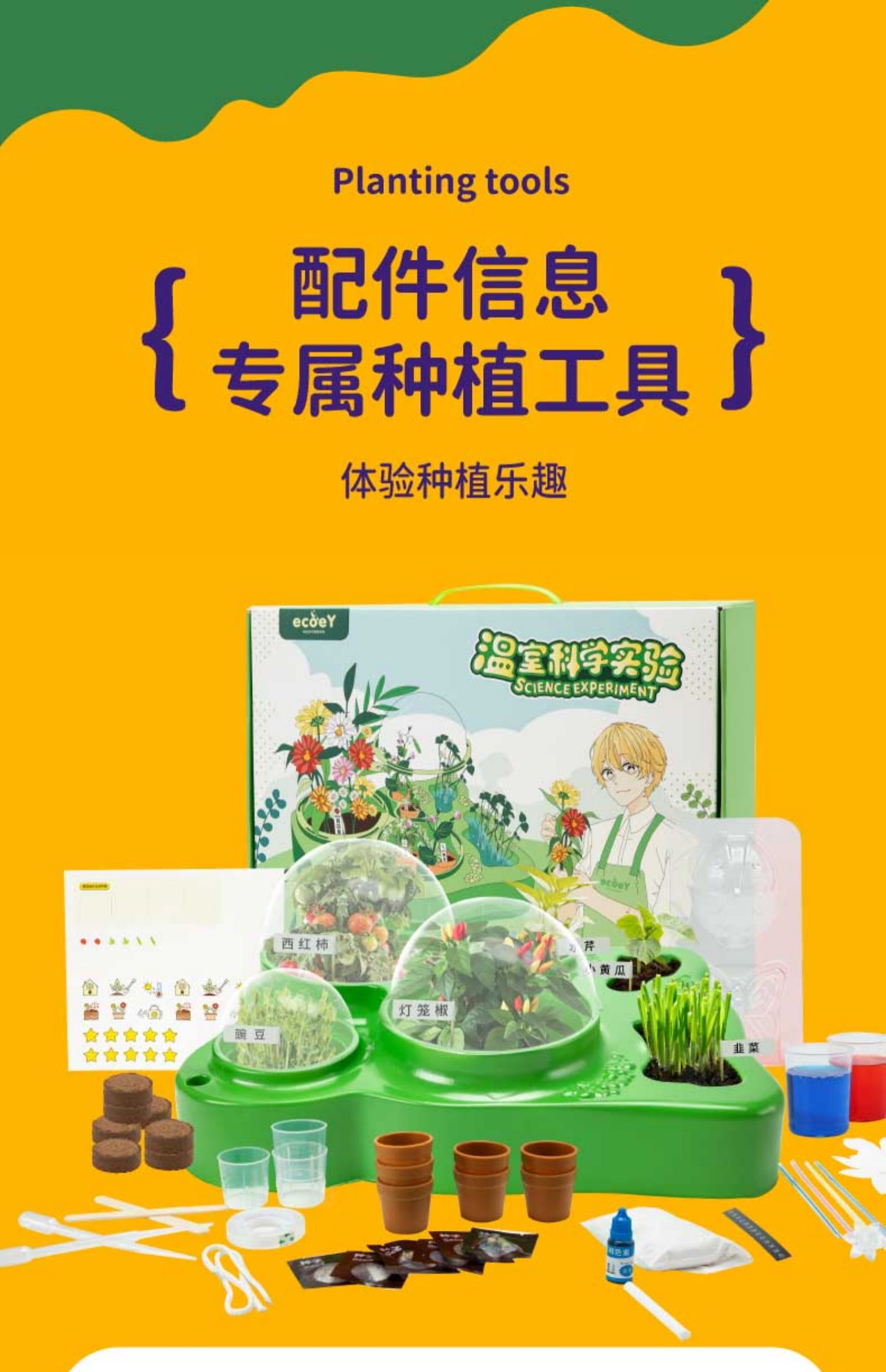 植物生长观察科学小实验套装儿童种植阳光房幼儿园小学生益智玩具温室科学实验 38*30*9.5