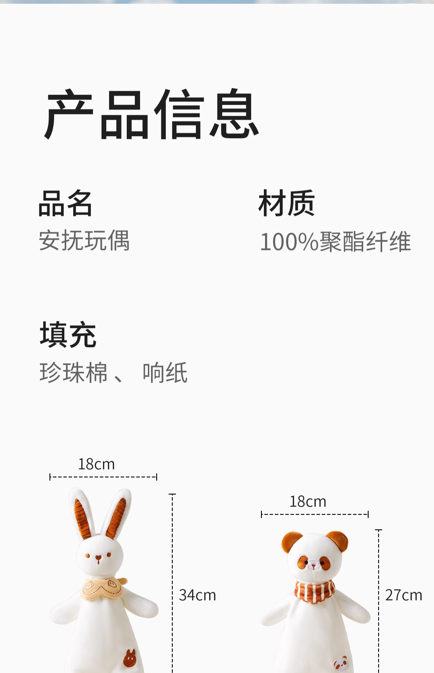 科巢婴儿安抚玩偶安抚巾熊猫兔子毛绒玩具可入口宝宝哄睡安抚神器