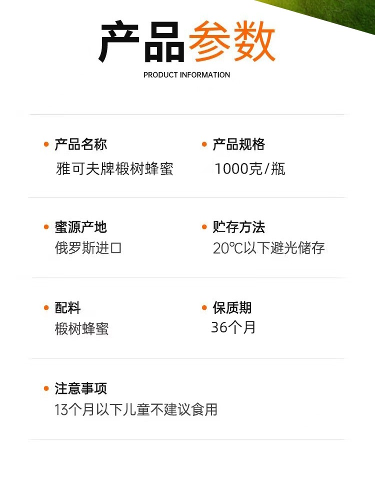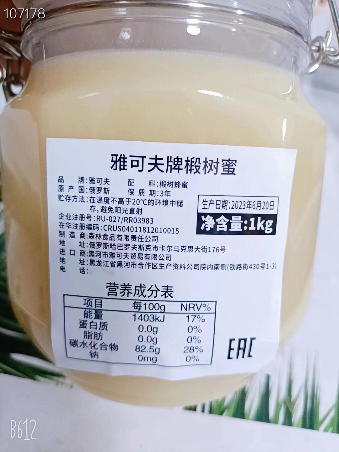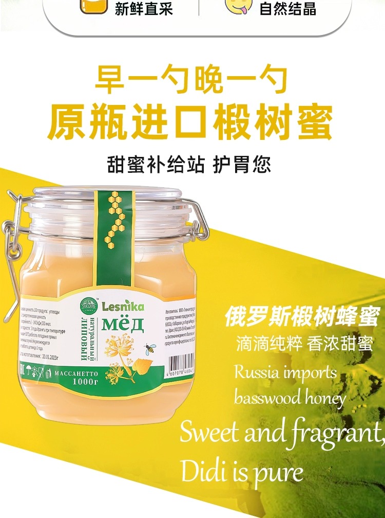 【中欧班列精选2斤装】俄罗斯蜂蜜原装进口雅克夫牌椴树蜂蜜卡扣瓶装 1KG/瓶 YPD