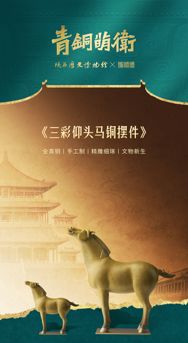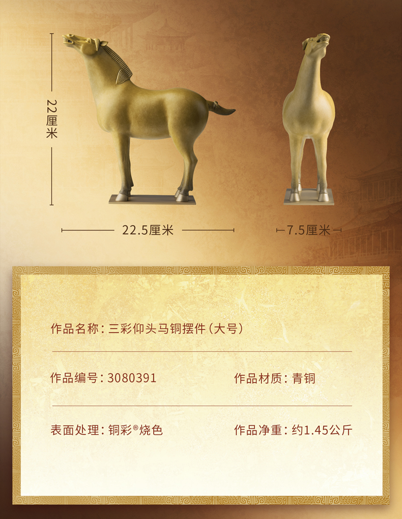 铜师傅 陕西历史博物馆系列《三彩仰头马铜摆件》青铜摆件