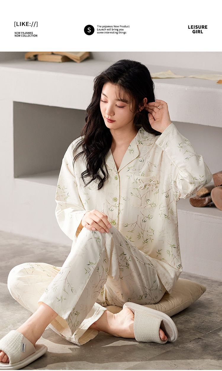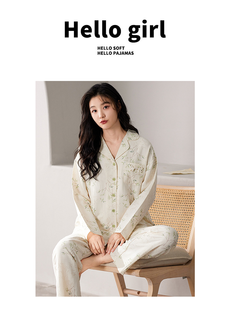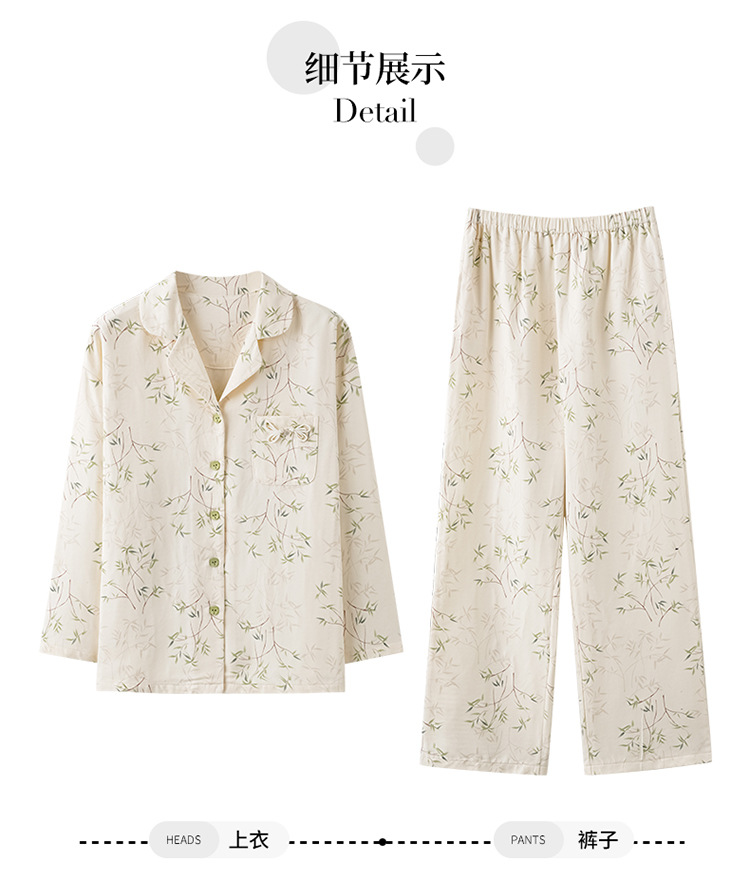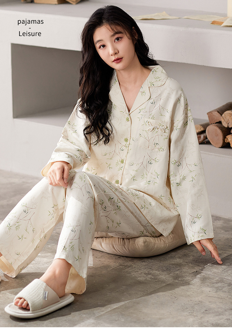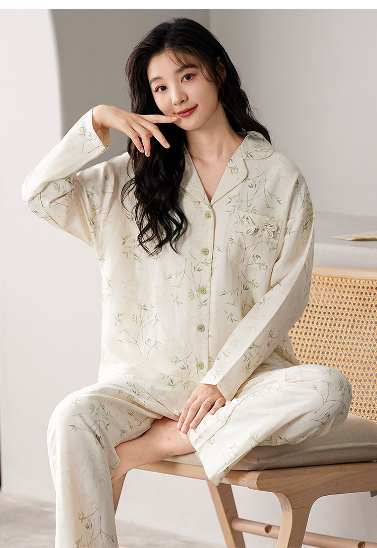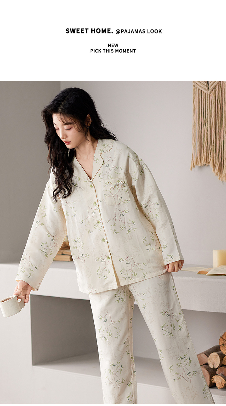 国风简约睡衣女春秋新款云朵棉长袖长裤开衫休闲家居服套装可外穿秋冬季长袖睡衣