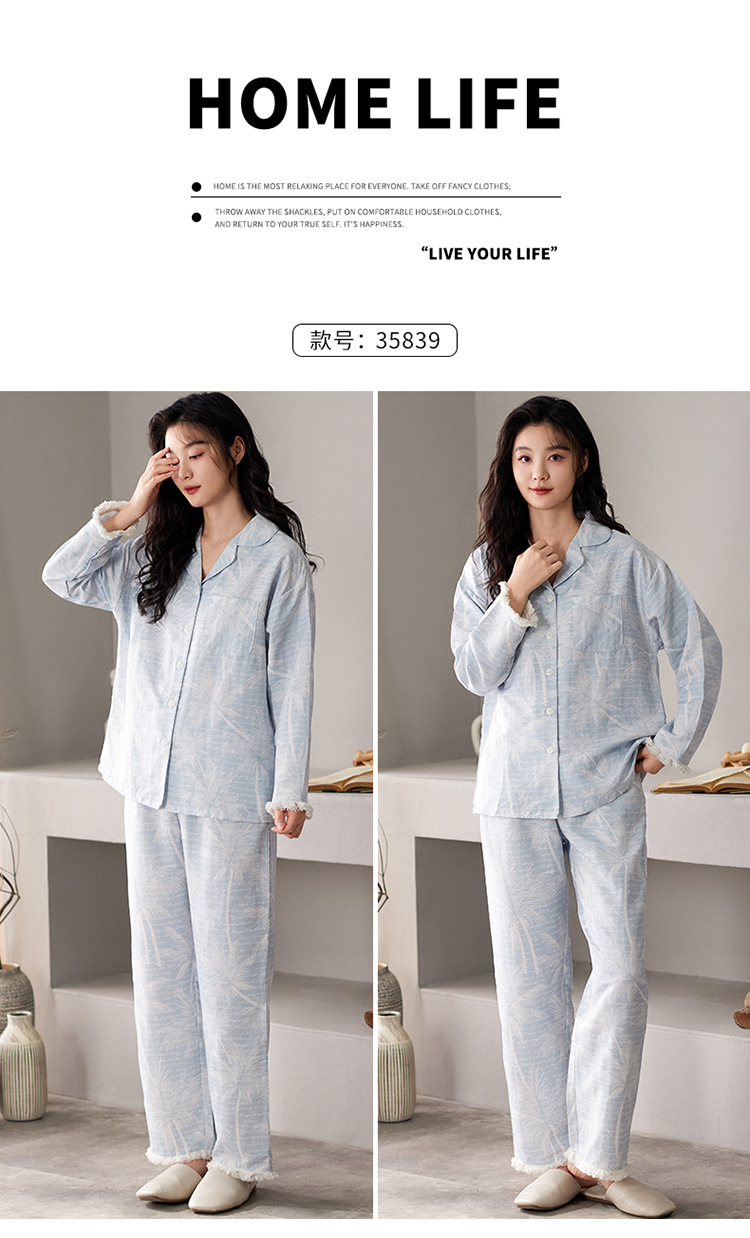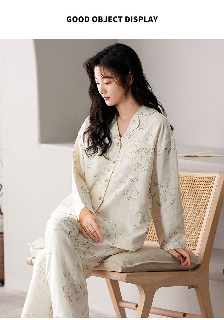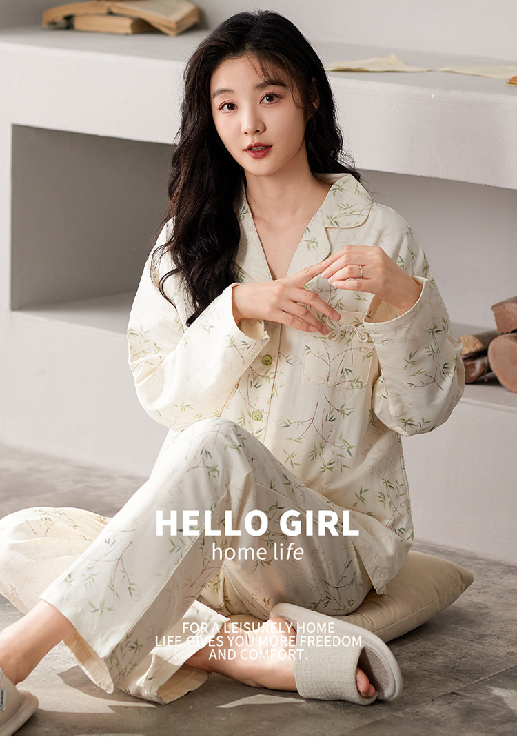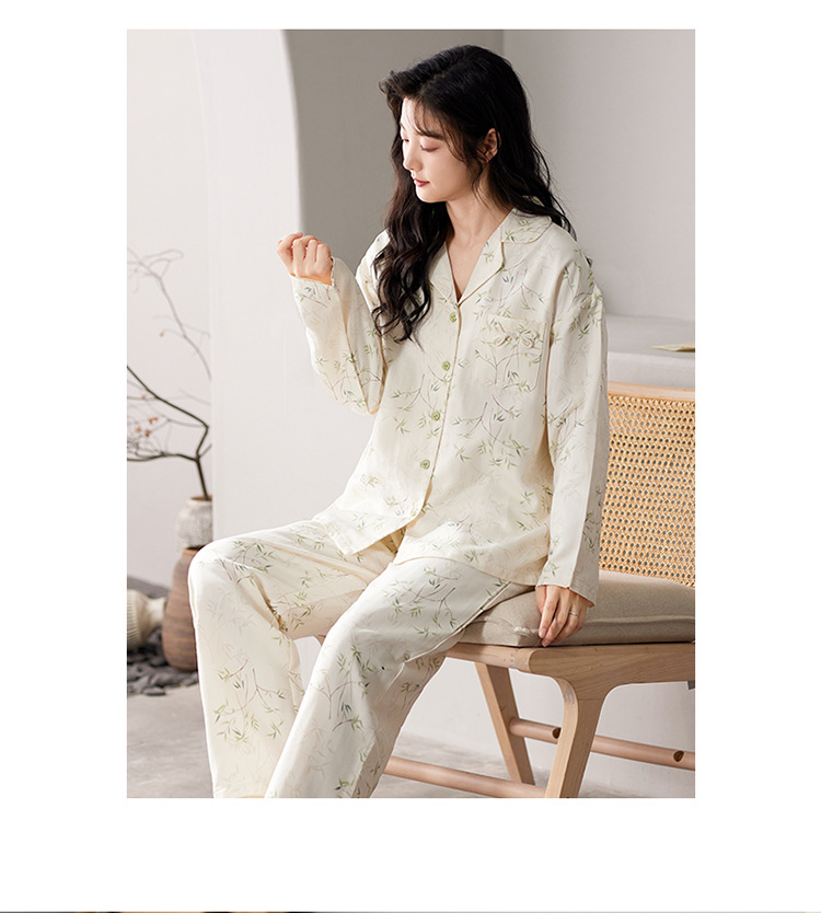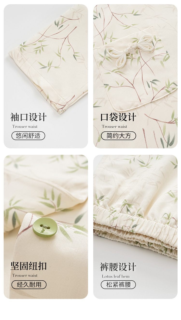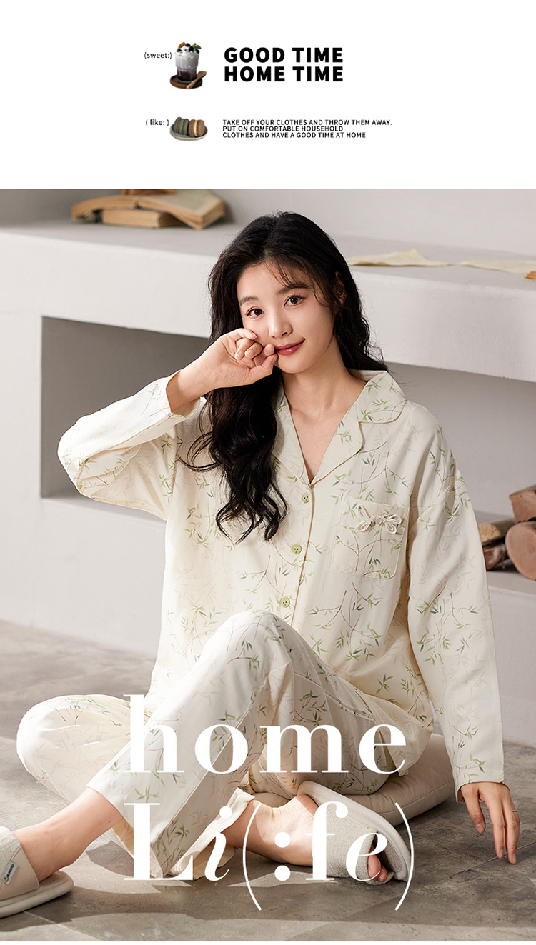 国风简约睡衣女春秋新款云朵棉长袖长裤开衫休闲家居服套装可外穿秋冬季长袖睡衣