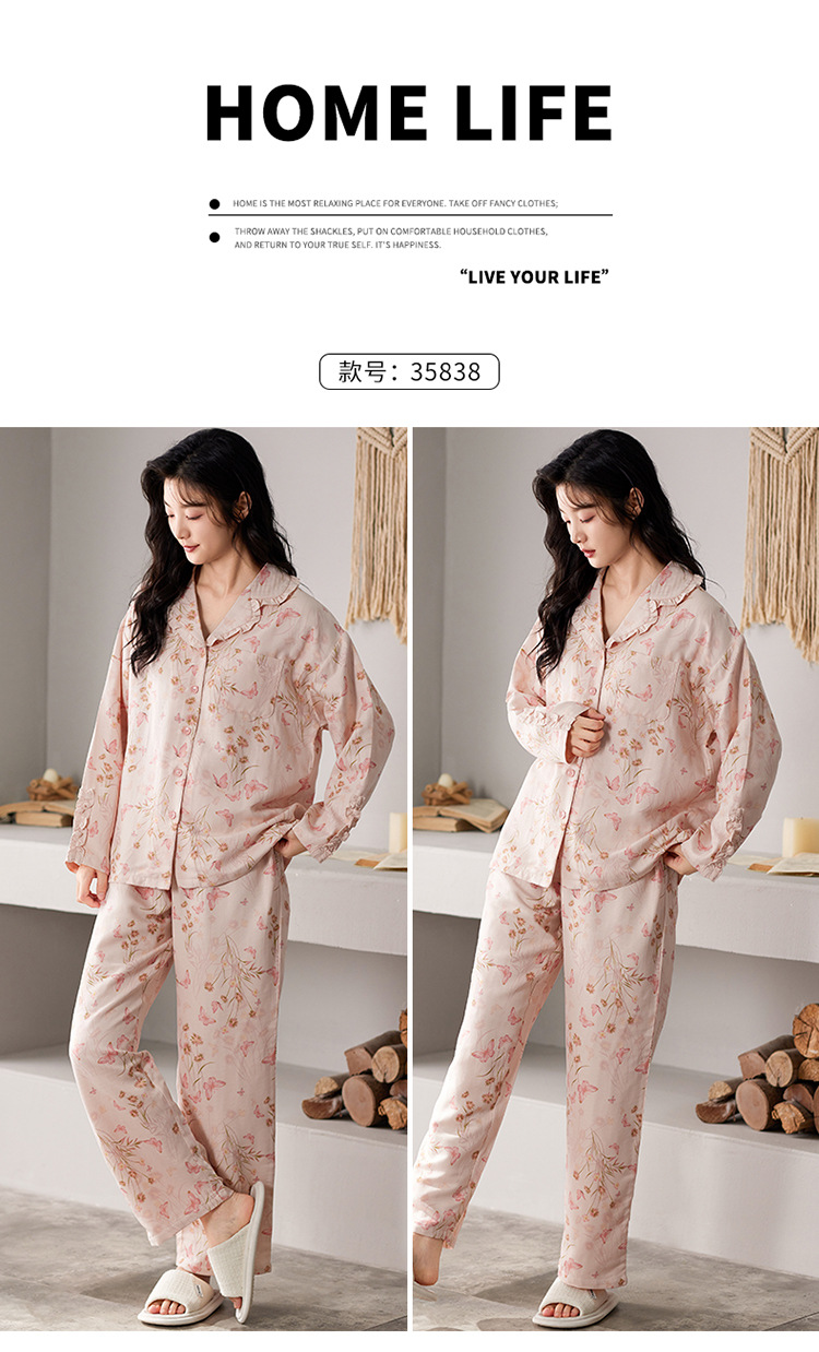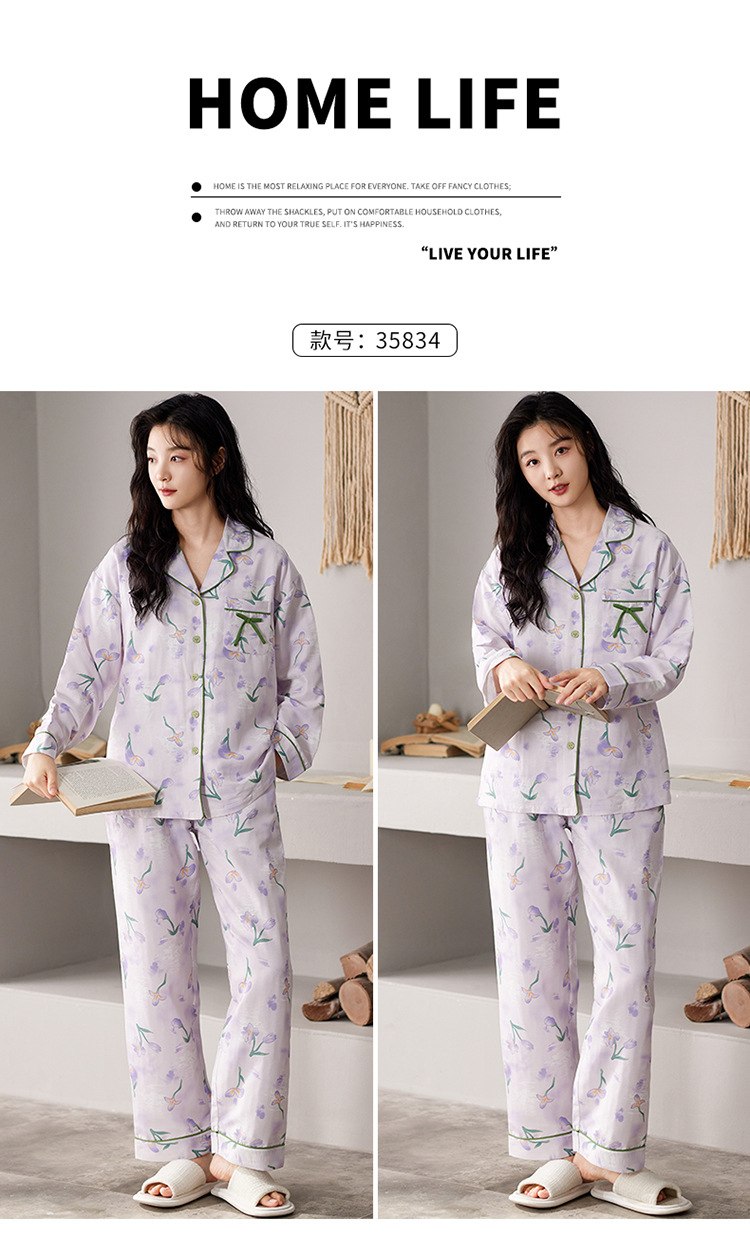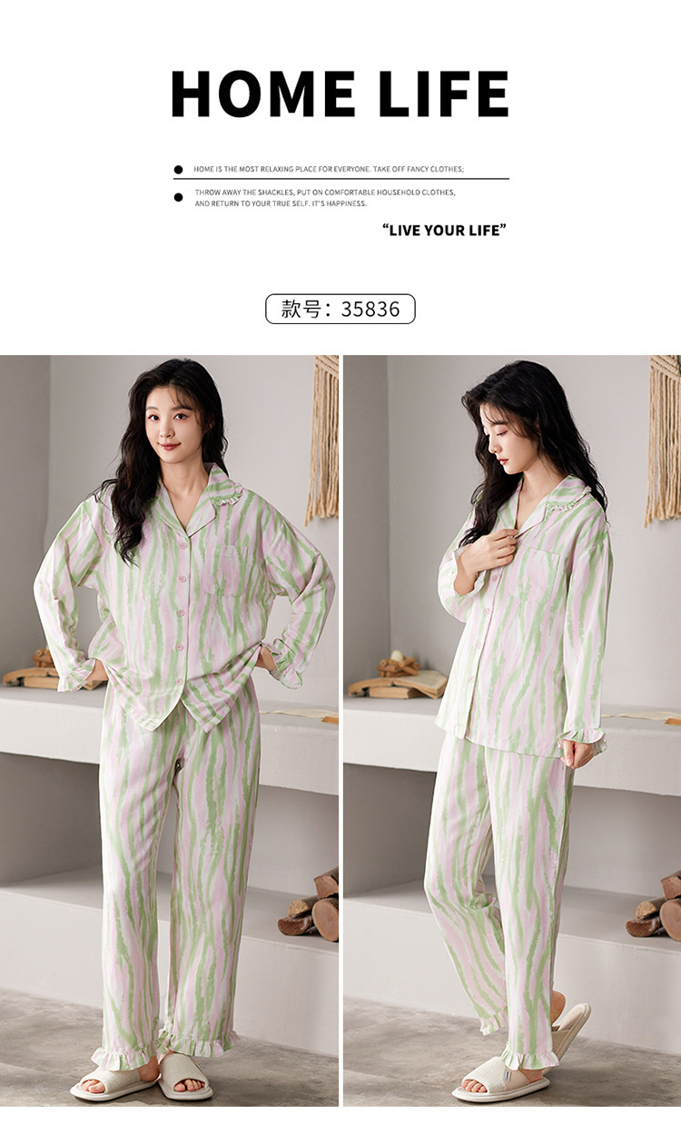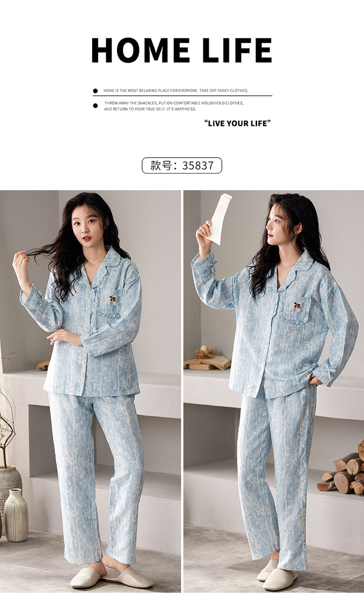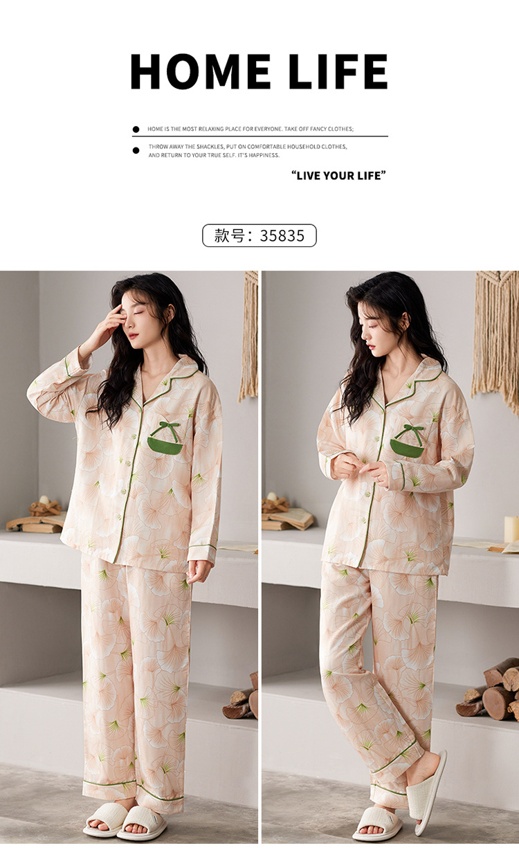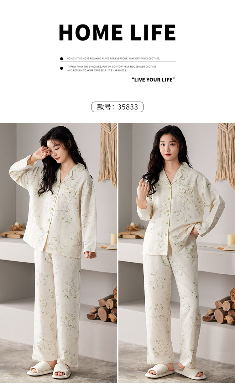 国风简约睡衣女春秋新款云朵棉长袖长裤开衫休闲家居服套装可外穿秋冬季长袖睡衣