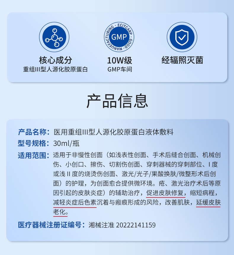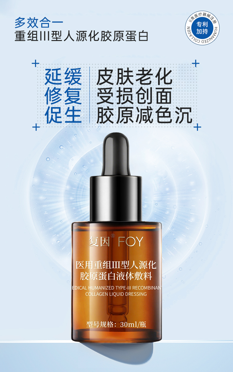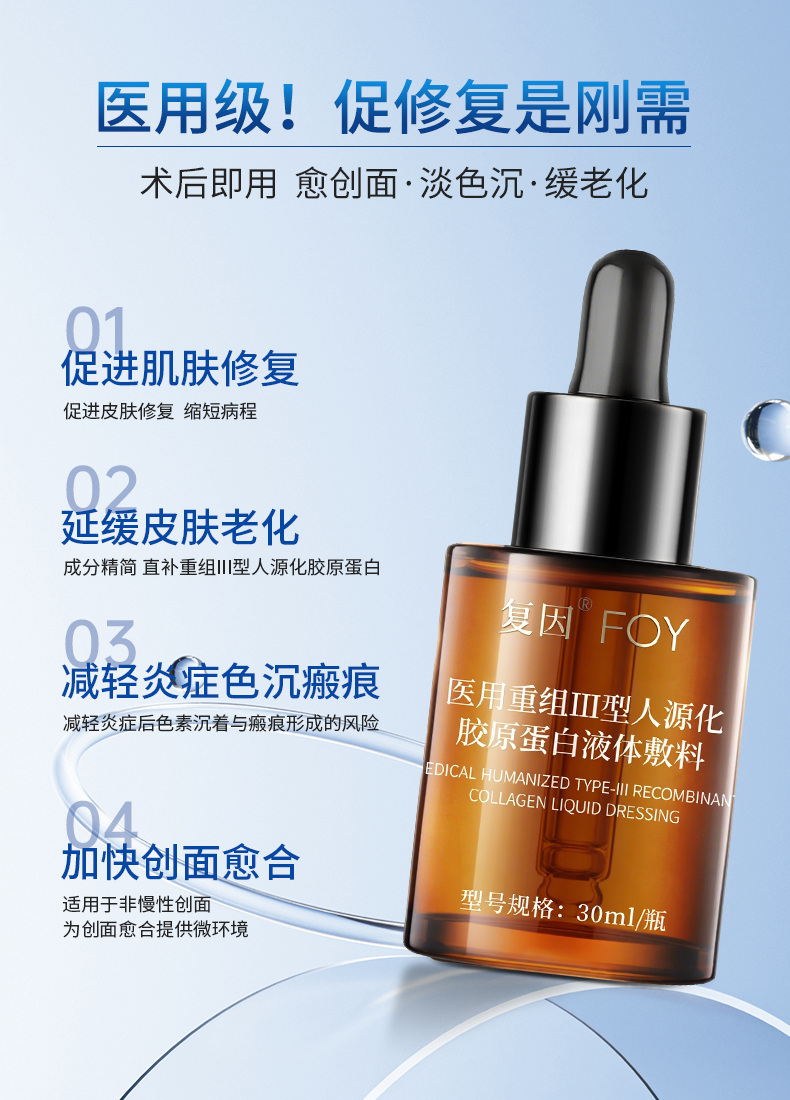 【新品2件9折,3件8折】复因医用重组Ⅲ型人源化胶原蛋白液体敷料30ml