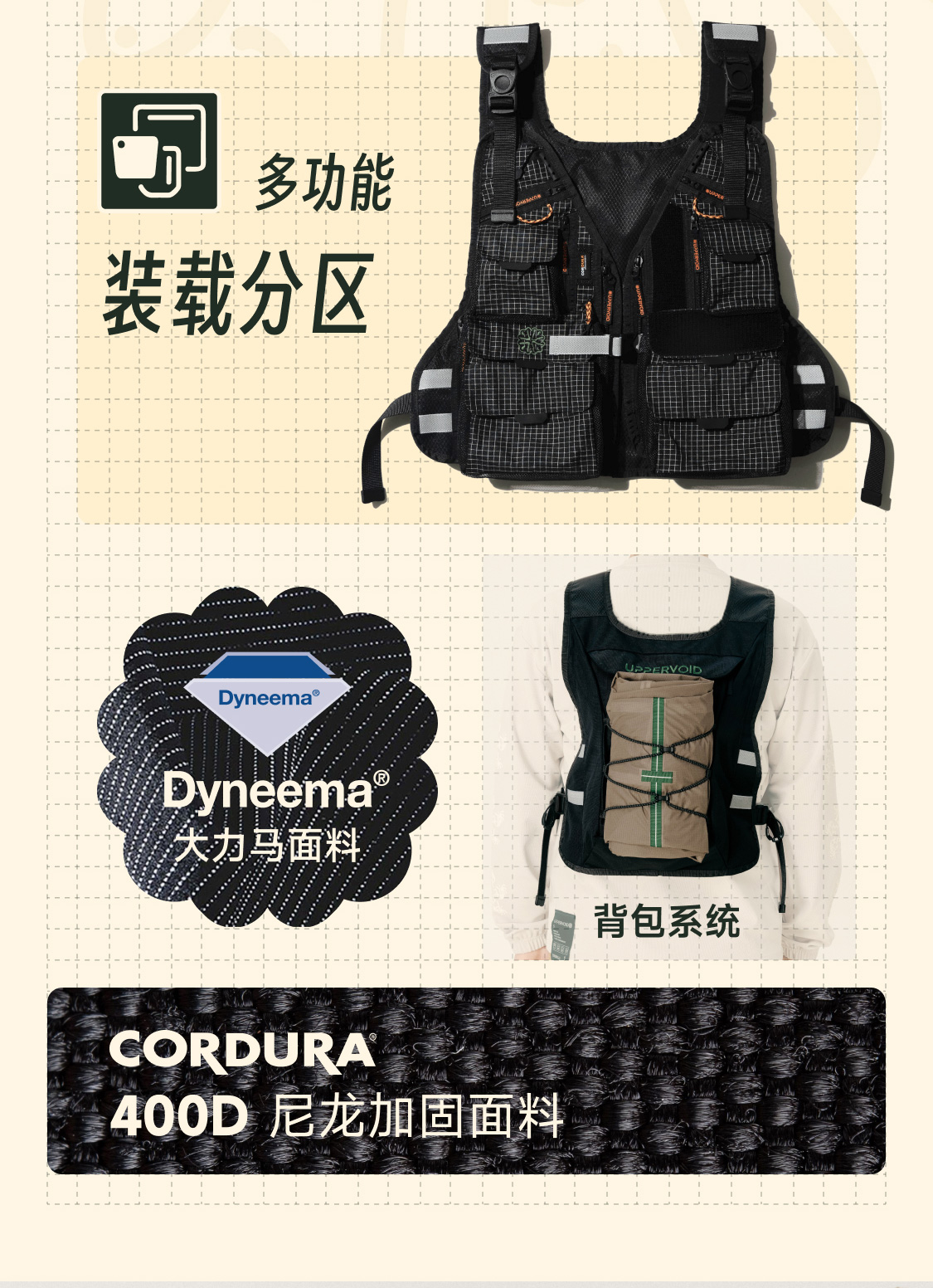 ALEZA装载马甲户外工装多功能口袋防水背心UPPERVOID二普纬度