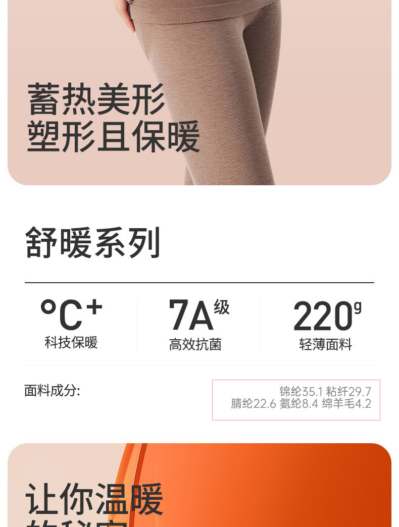 【轻塑身&修身显瘦】发热羊毛保暖内衣女套装 痕美体修身提臀收腹秋衣秋裤款