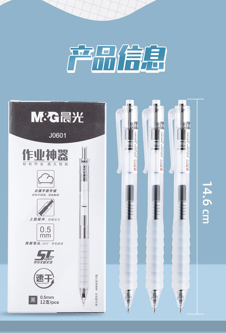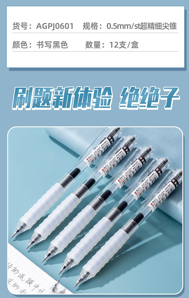 【开学季必备】晨光AGPJ0601作业神器 ST笔头 按动中性笔 速干 0.5mm水笔碳素笔
