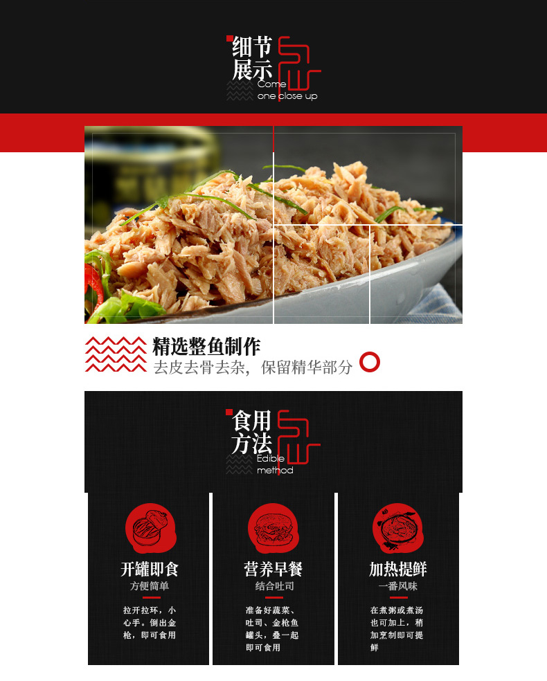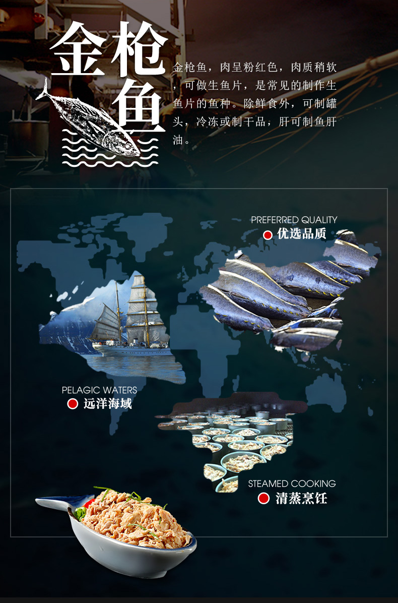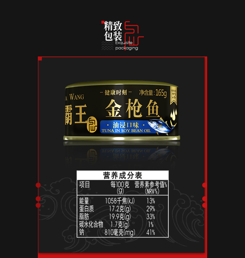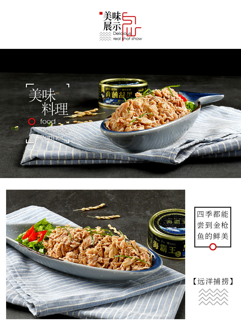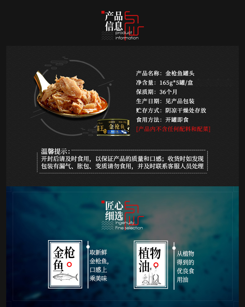 海霸王油浸金枪鱼罐头中段鱼肉拉速冻原味不腥送礼物165gX5罐