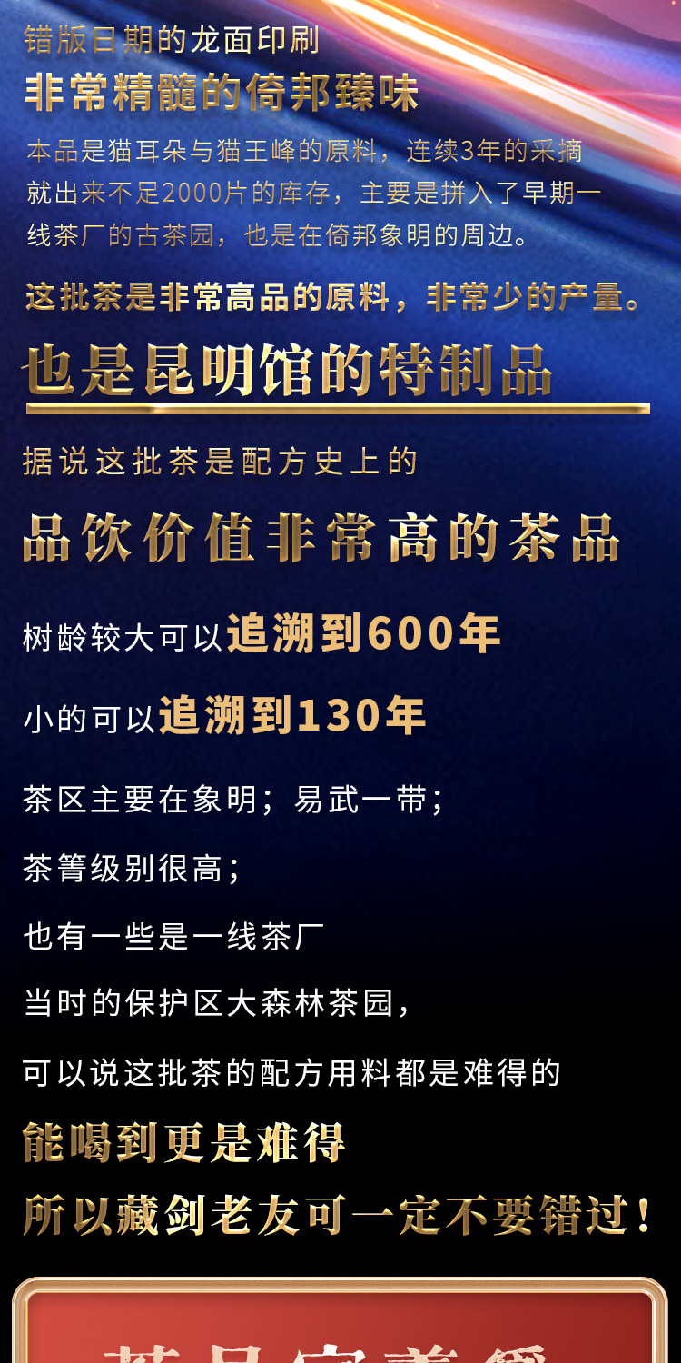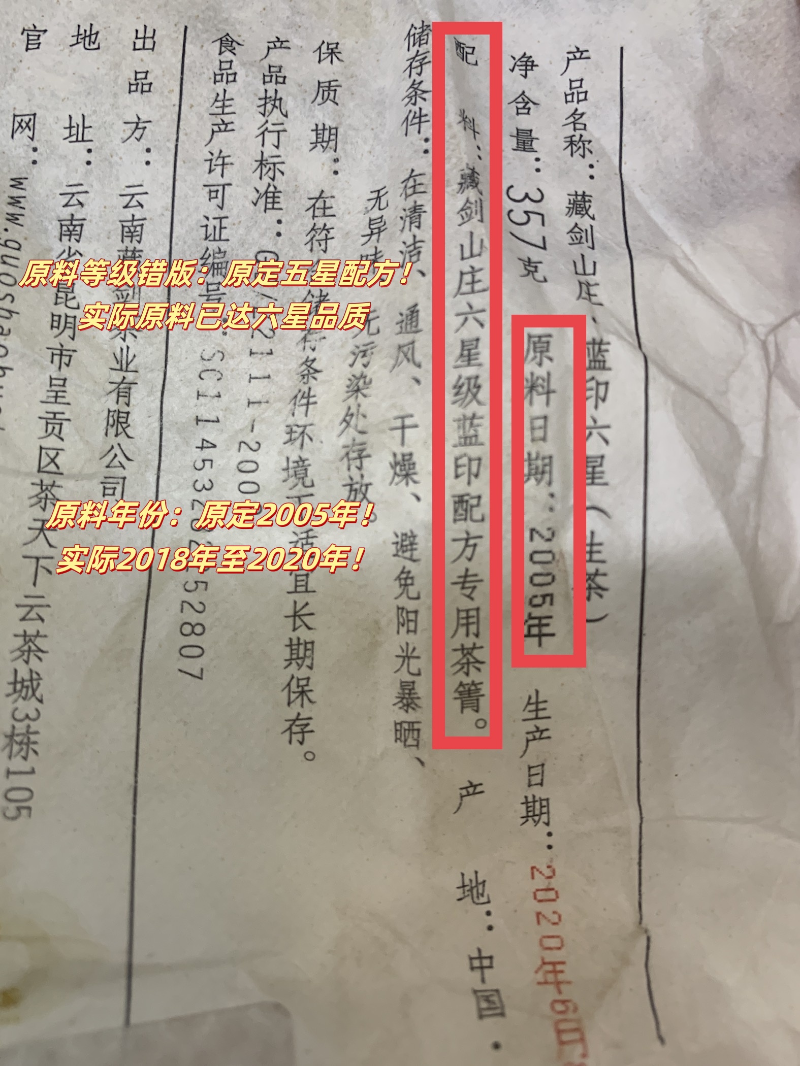 【藏剑山庄】2020年品牌孤品!限量40片孤品引爆开门红!2020年郭少华监制五星级蓝印配方青饼 天王蓝印!拍5片送1片