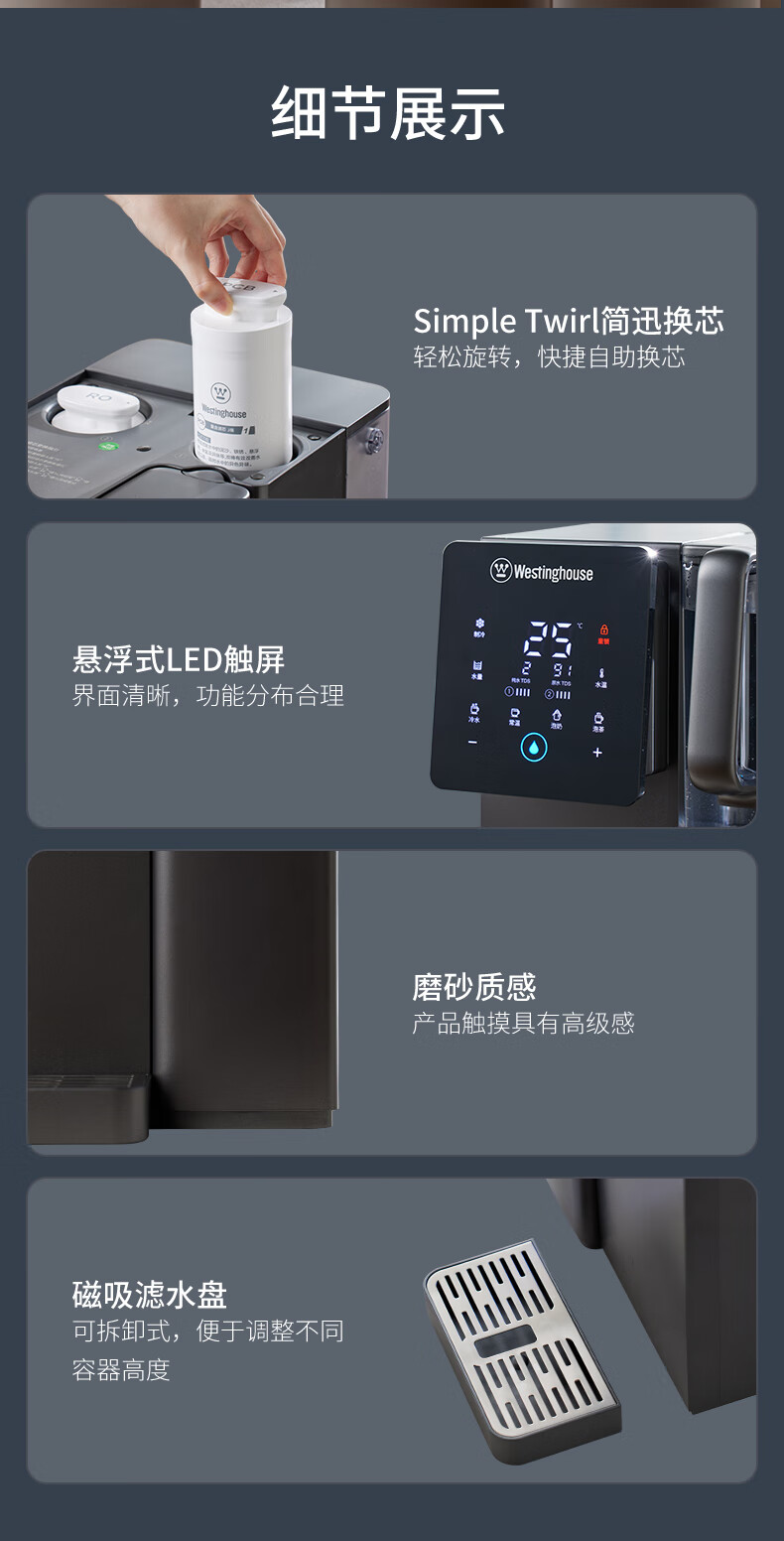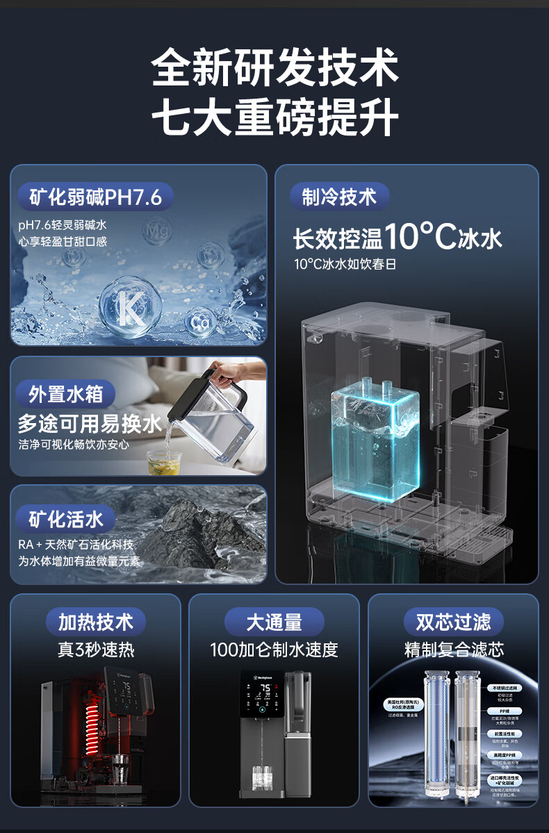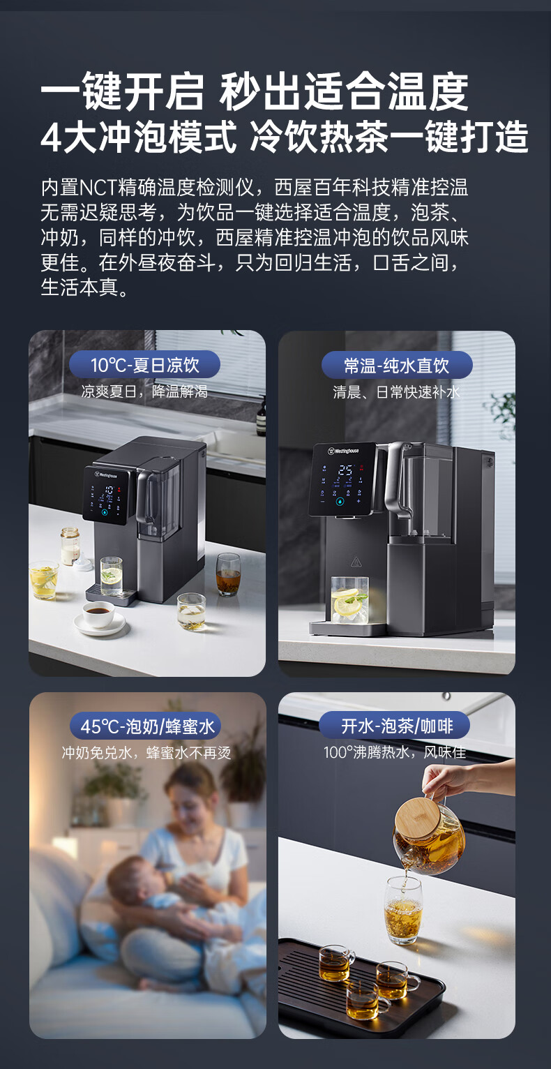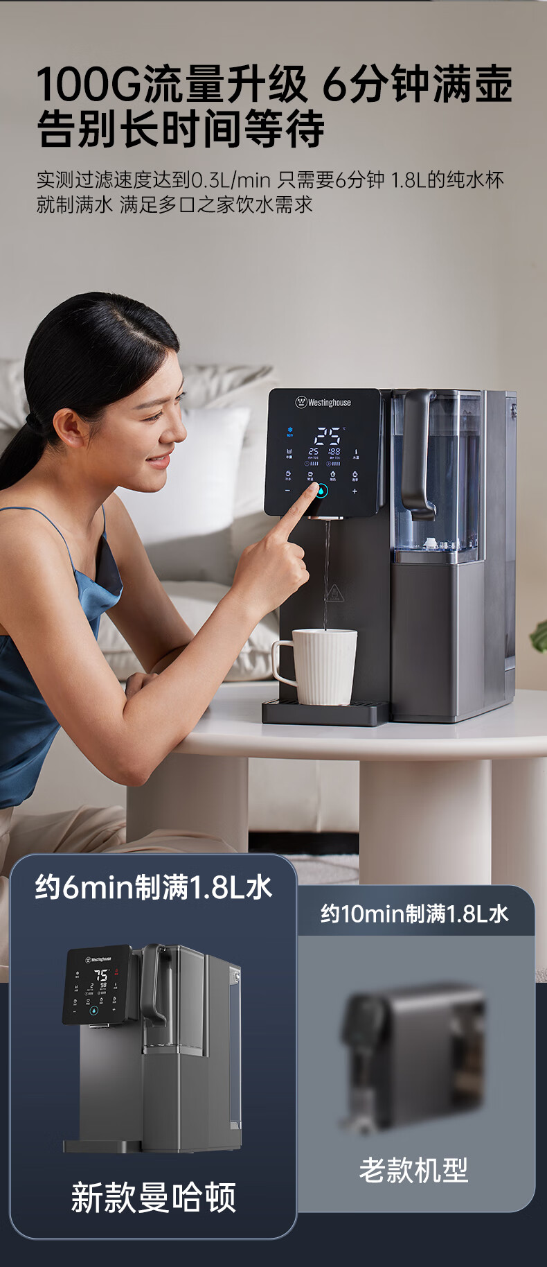 【小家电】西屋弱碱性台式净饮机冷热 家用直饮净水器 免安装台上饮水机 反渗透过滤净饮加热一体机 10度制冷WFHRO-F5曼哈顿星空灰 HF