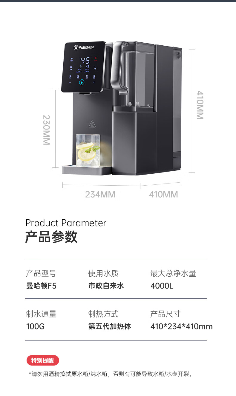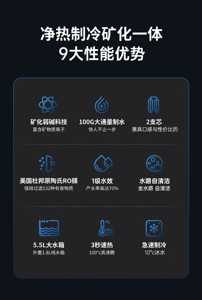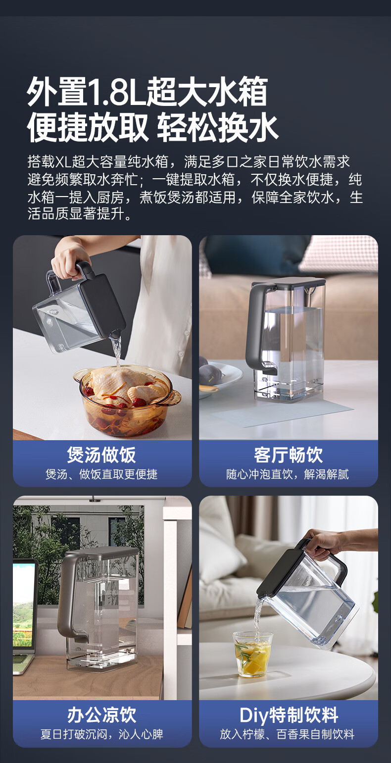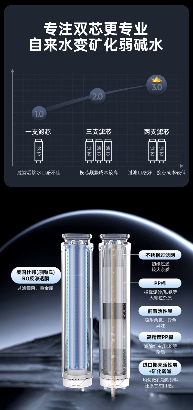 【小家电】西屋弱碱性台式净饮机冷热 家用直饮净水器 免安装台上饮水机 反渗透过滤净饮加热一体机 10度制冷WFHRO-F5曼哈顿星空灰 HF