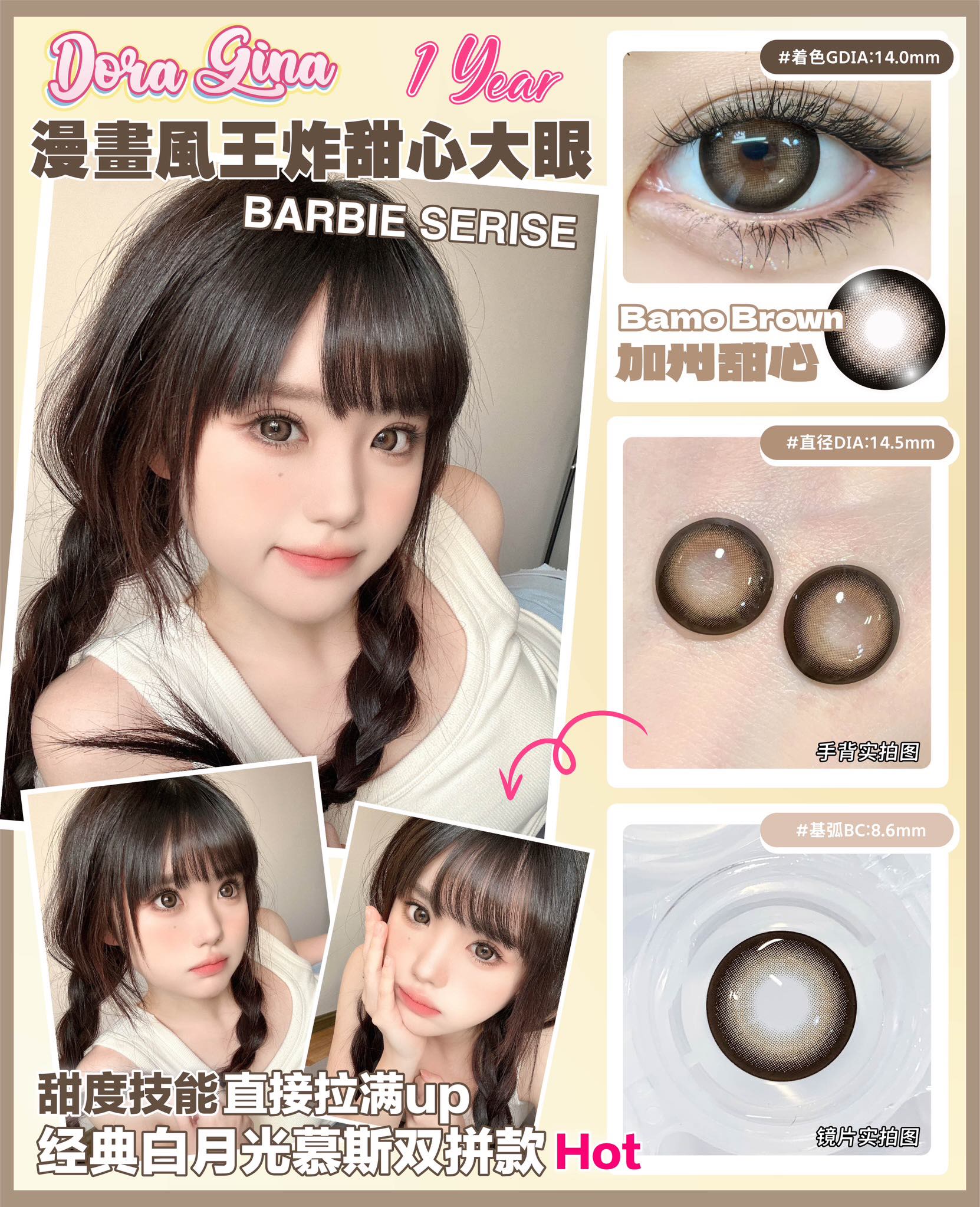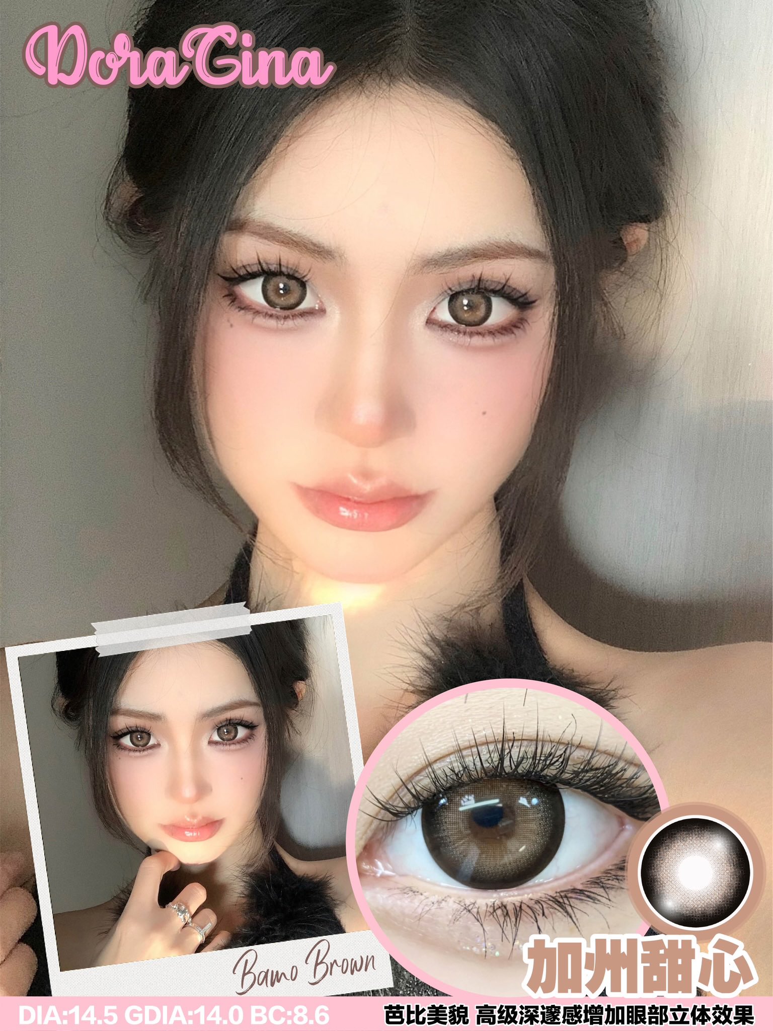 Doragina 加州甜心 年抛 两片 14.5mm 参考着色 14.0mm 基弧 8.6 含水 38% 韩国进口