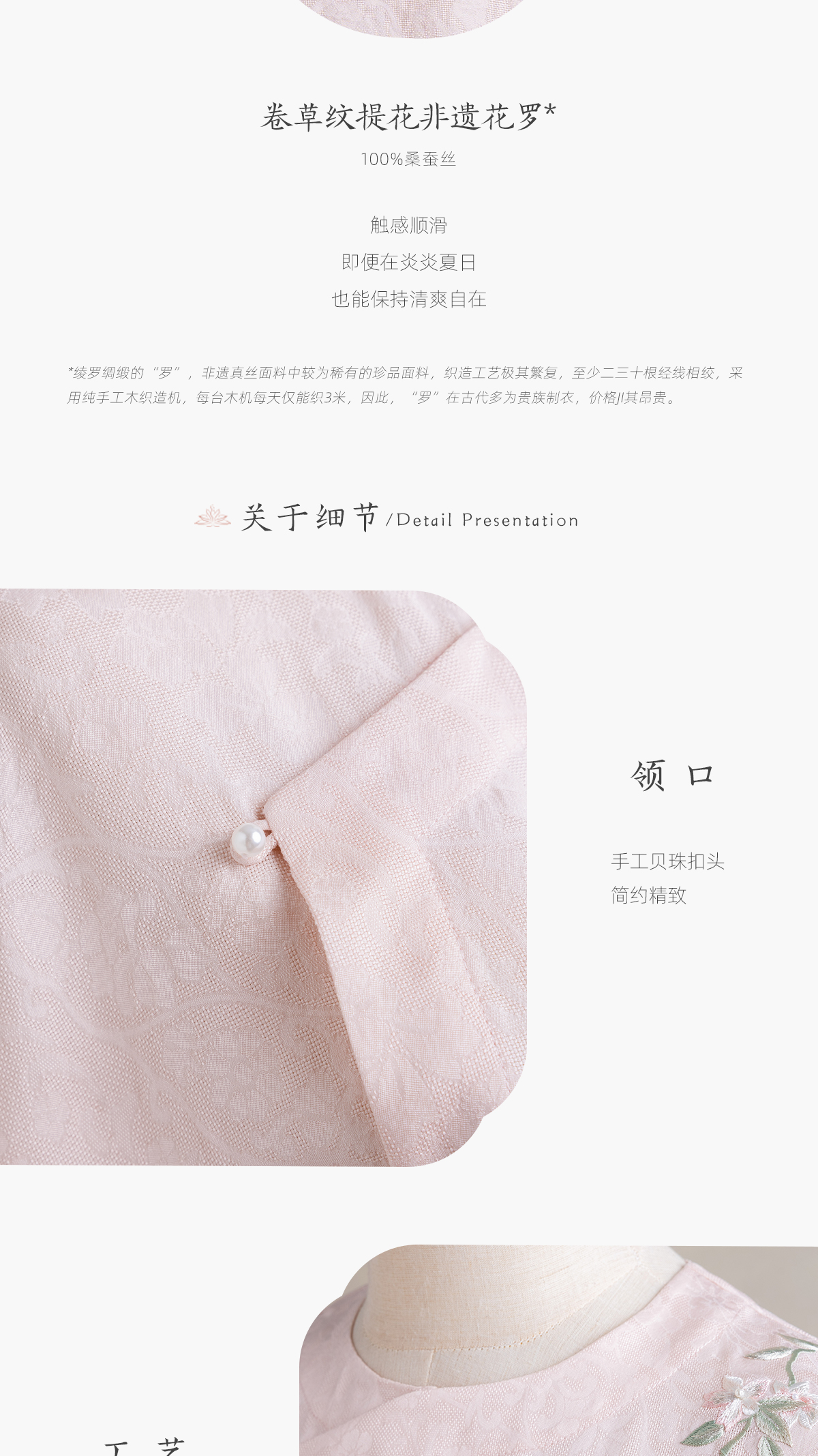 荷言HEYEN 留春 卷草纹真丝非遗花罗新中式短袖上衣高定系列