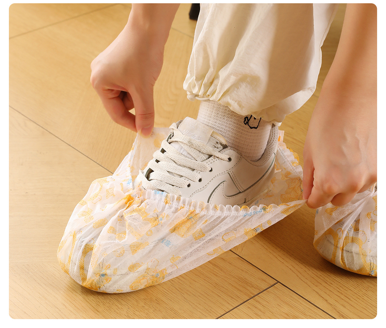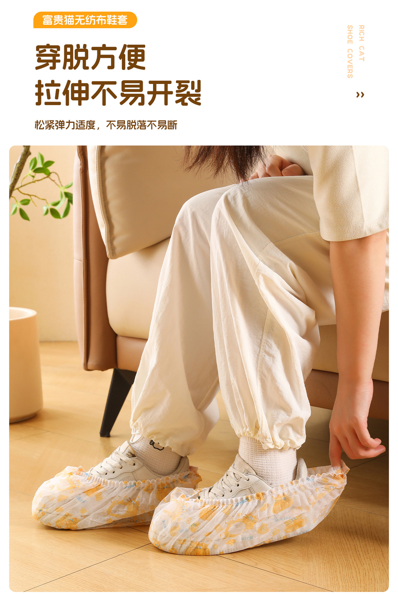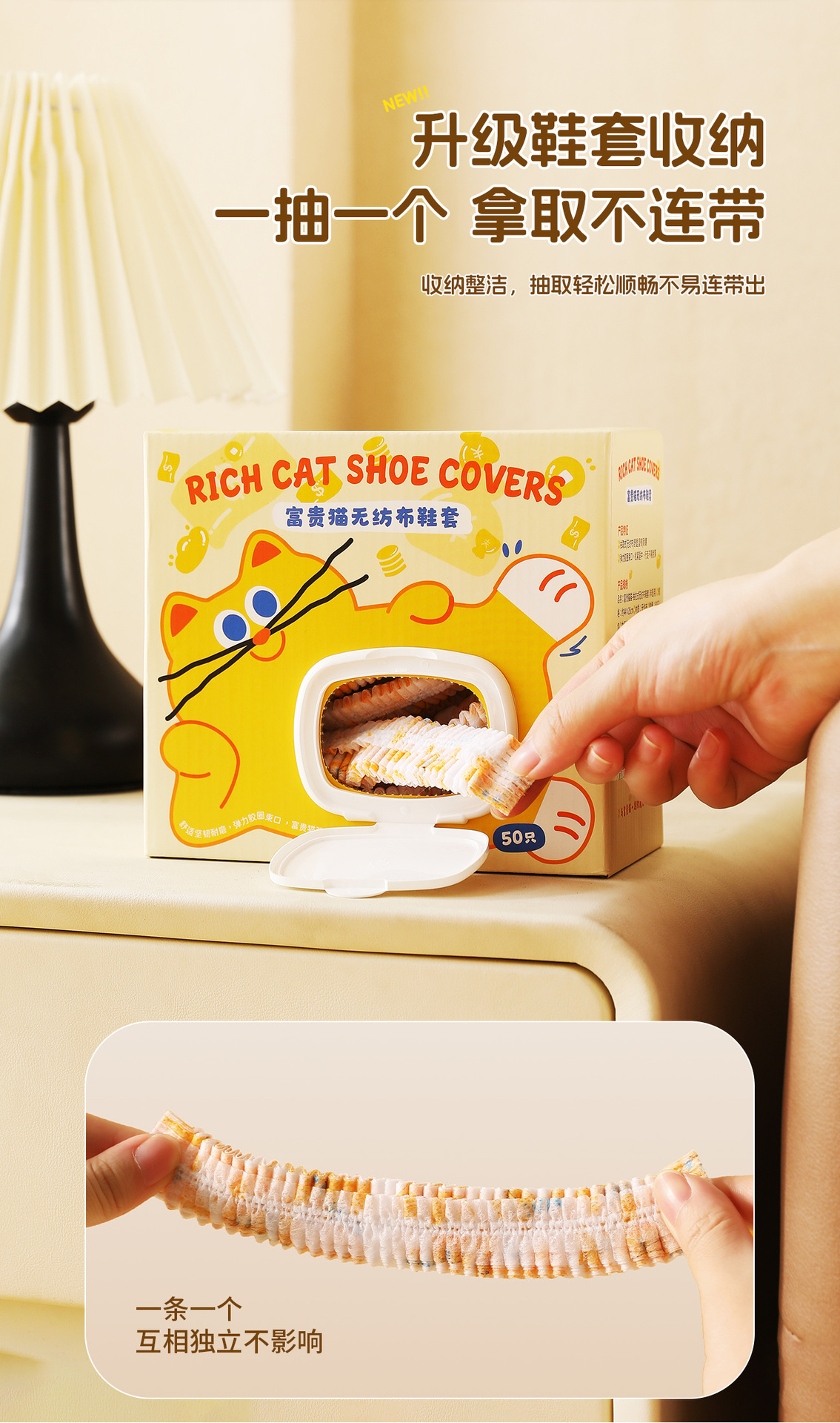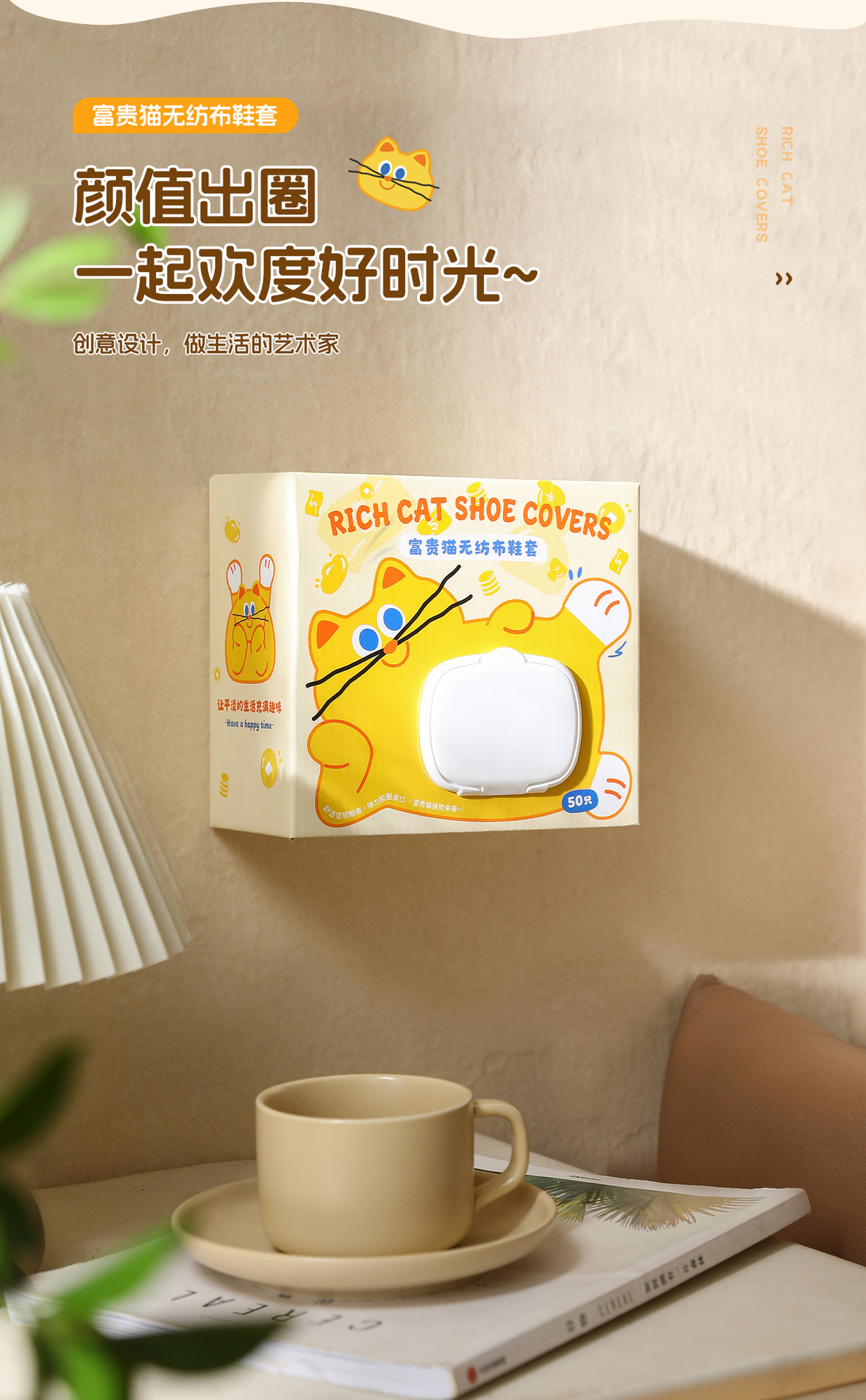 原创图案【壁挂式 100只加厚无纺布鞋套 】富贵猫鞋套 家用客人用加厚耐磨神器 室内一次性厚款反复用鞋套