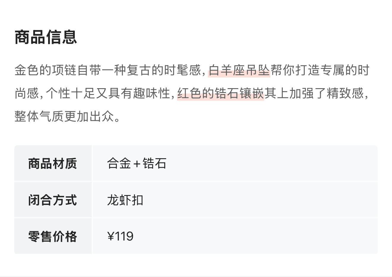 Time Made 白羊座吊坠锆石项链 6660
