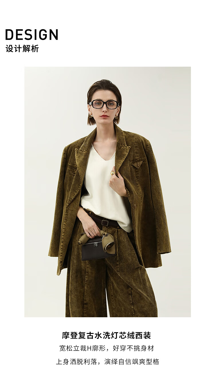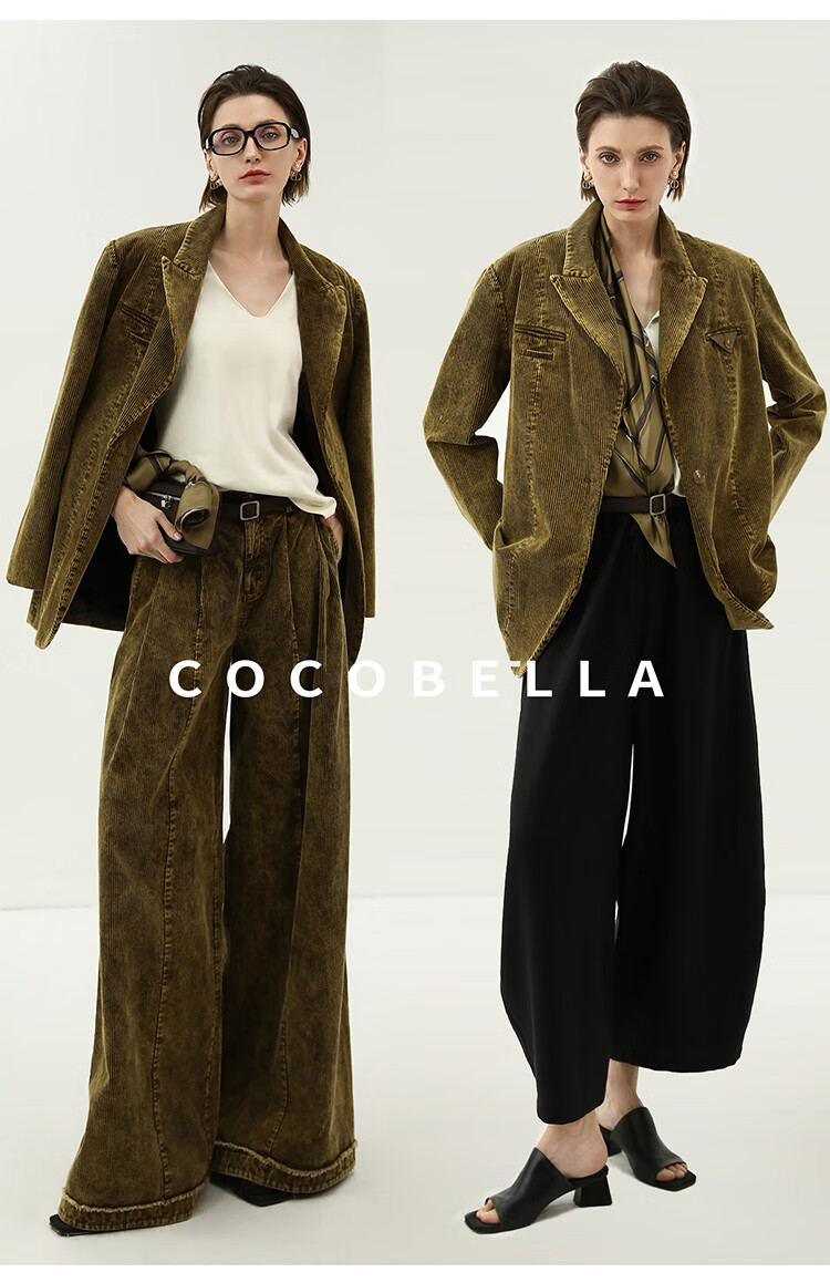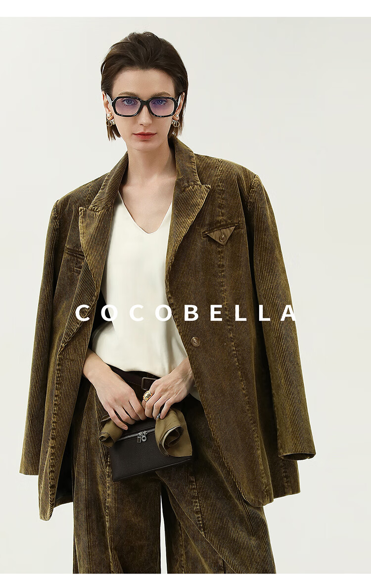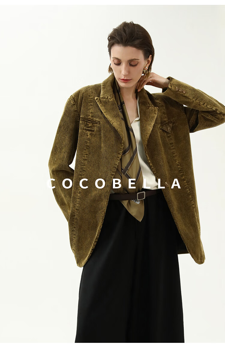 COCOBELLA环保水洗灯芯绒西装女25春老钱风休闲外套SI7025