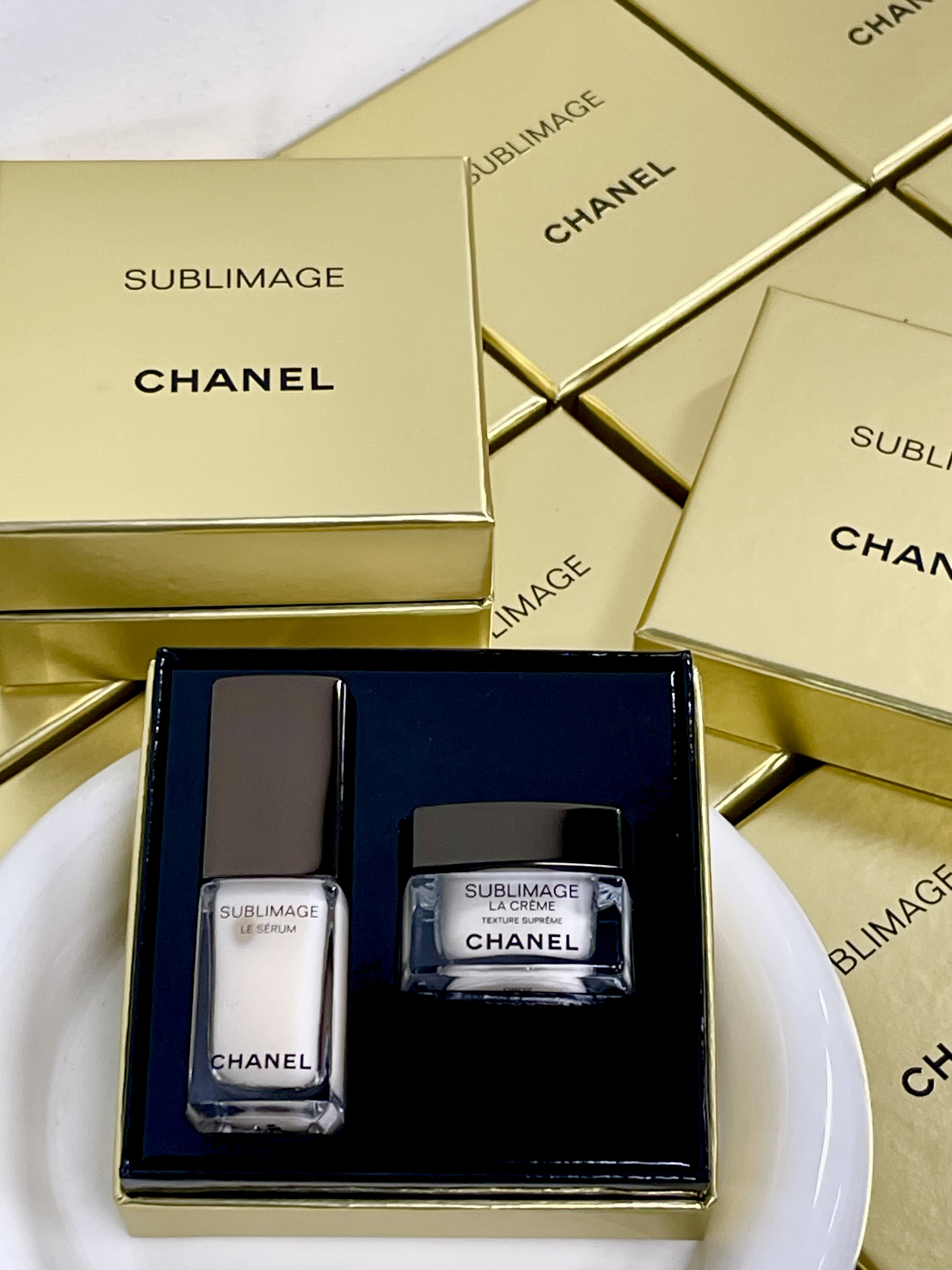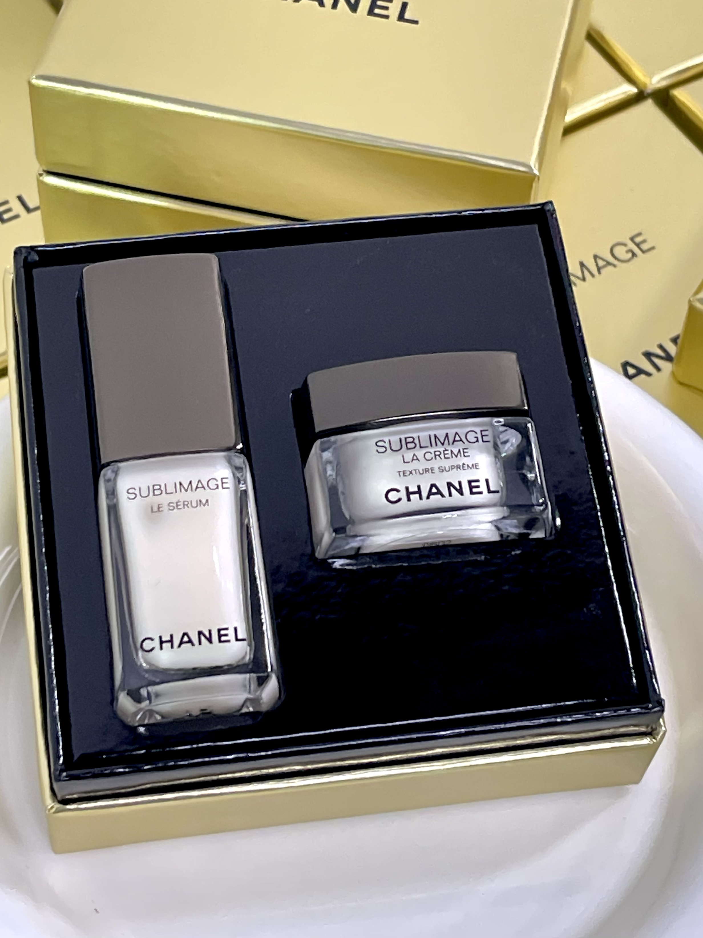【品名】chanel香奈儿小黑盒两件套(奢华精粹乳霜5ml+奢华精粹焕活精华液5ml)