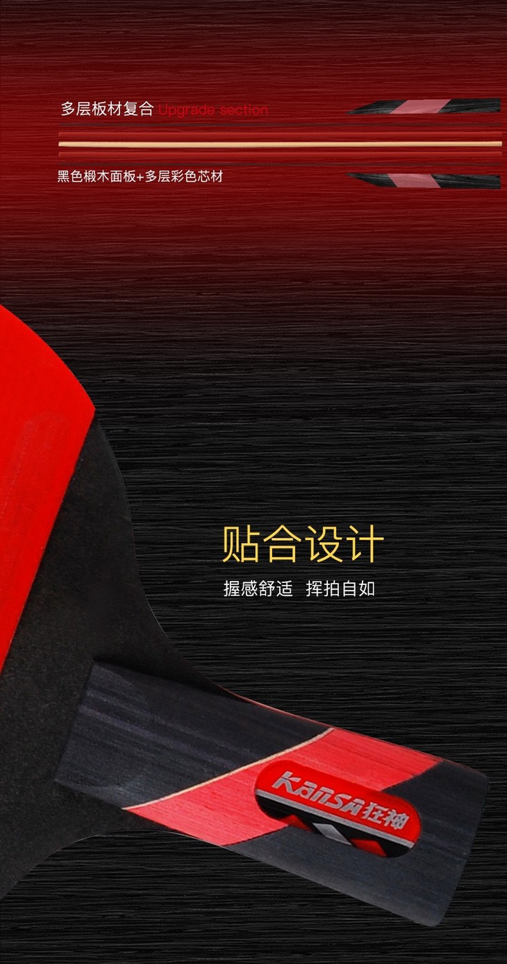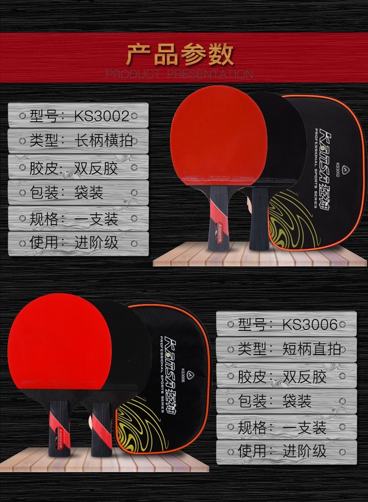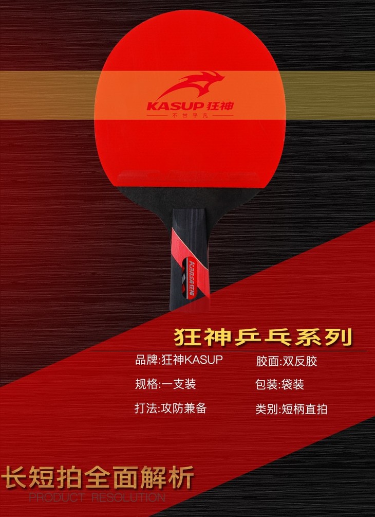 狂神乒乓球拍 3星专业长柄横拍单拍ks3002