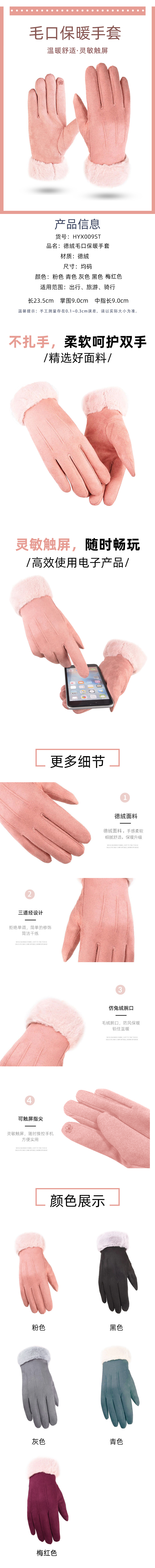 恒源祥 德绒毛口保暖手套HYX009ST