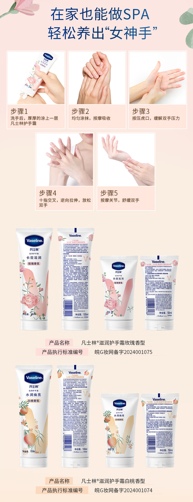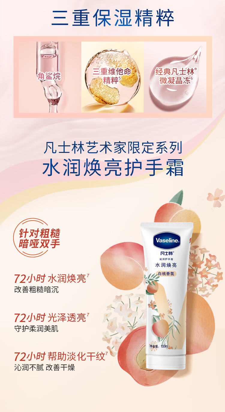 凡士林护手霜100ml白桃香 滋润保湿手部护理 持久留香 100116034069