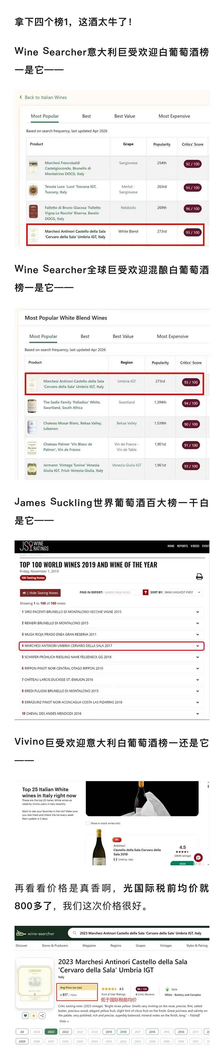 【拿下4个榜一】2023年意大利安东尼世家芝华露干白葡萄酒