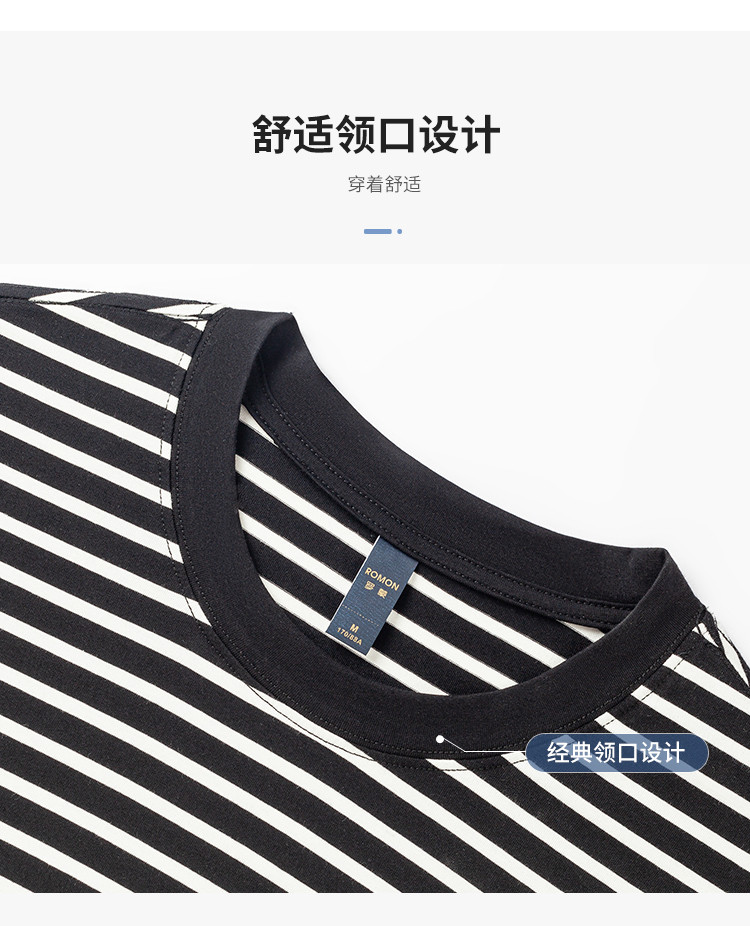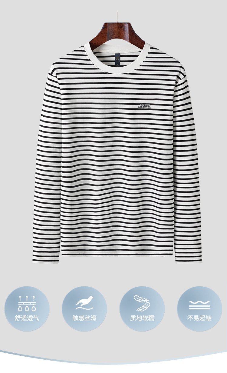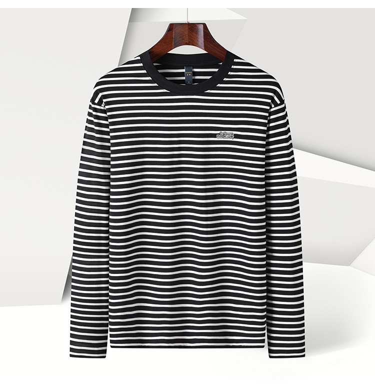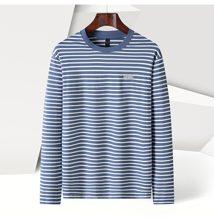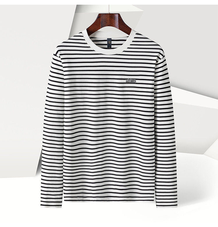 【桑蚕丝混纺】罗蒙春秋绣花胸标海魂衫t恤男长袖t恤男时尚条纹t恤长袖男