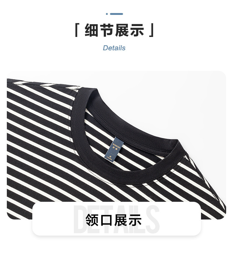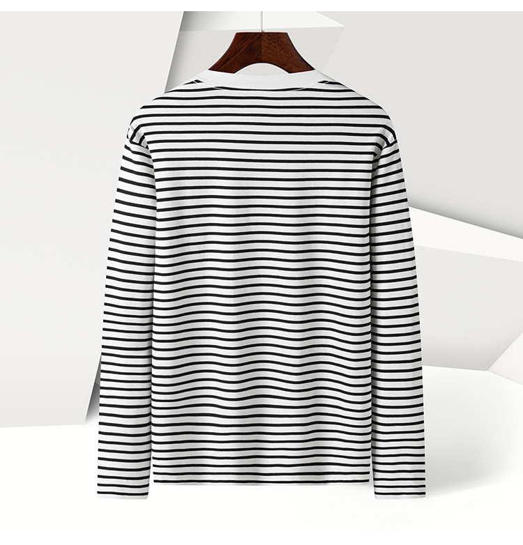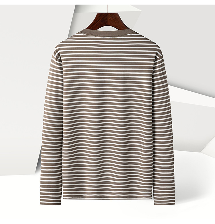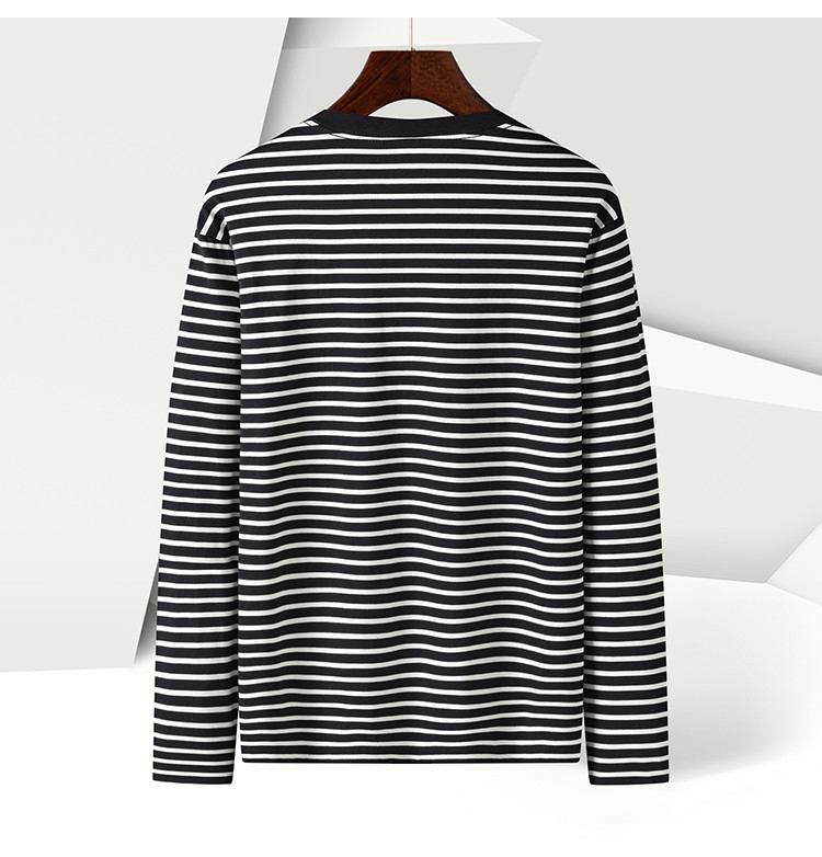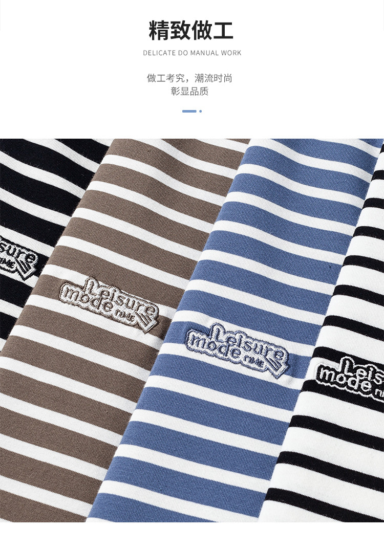 【桑蚕丝混纺】罗蒙春秋绣花胸标海魂衫t恤男长袖t恤男时尚条纹t恤长袖男